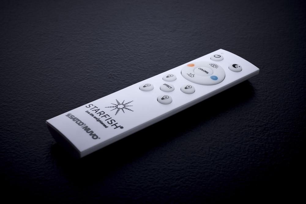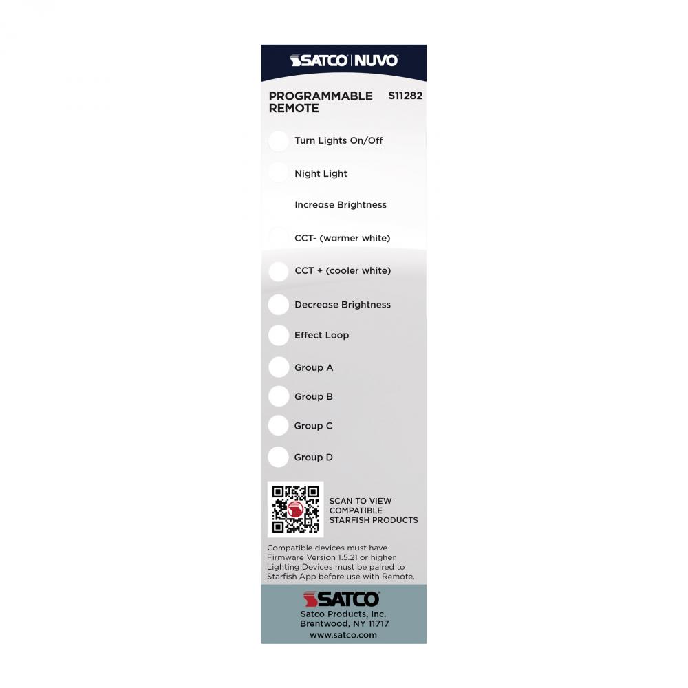 The STARFISH by SATCO Programmable Smart Remote offers alternative control over smart lighting, once the lighting devices are paired to the STARFISH App. Users can adjust the lighting within a 50-foot radius, allowing for convenient remote operation across
