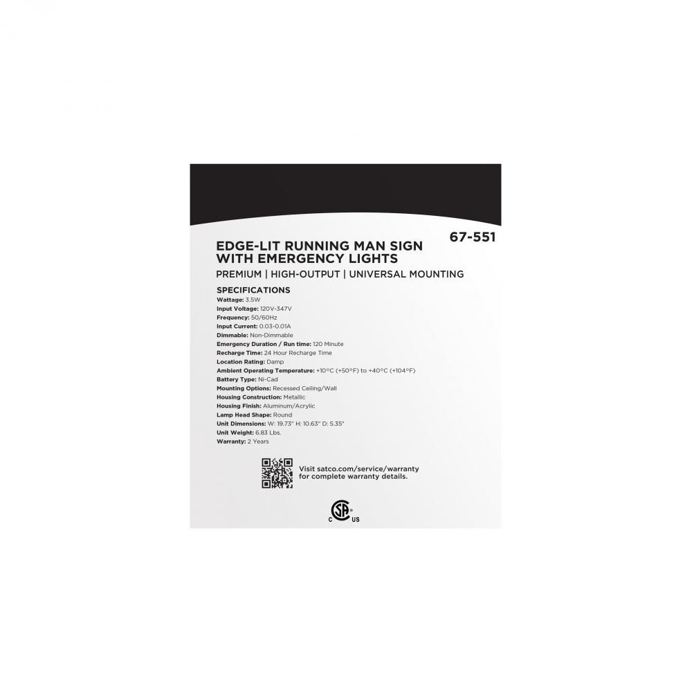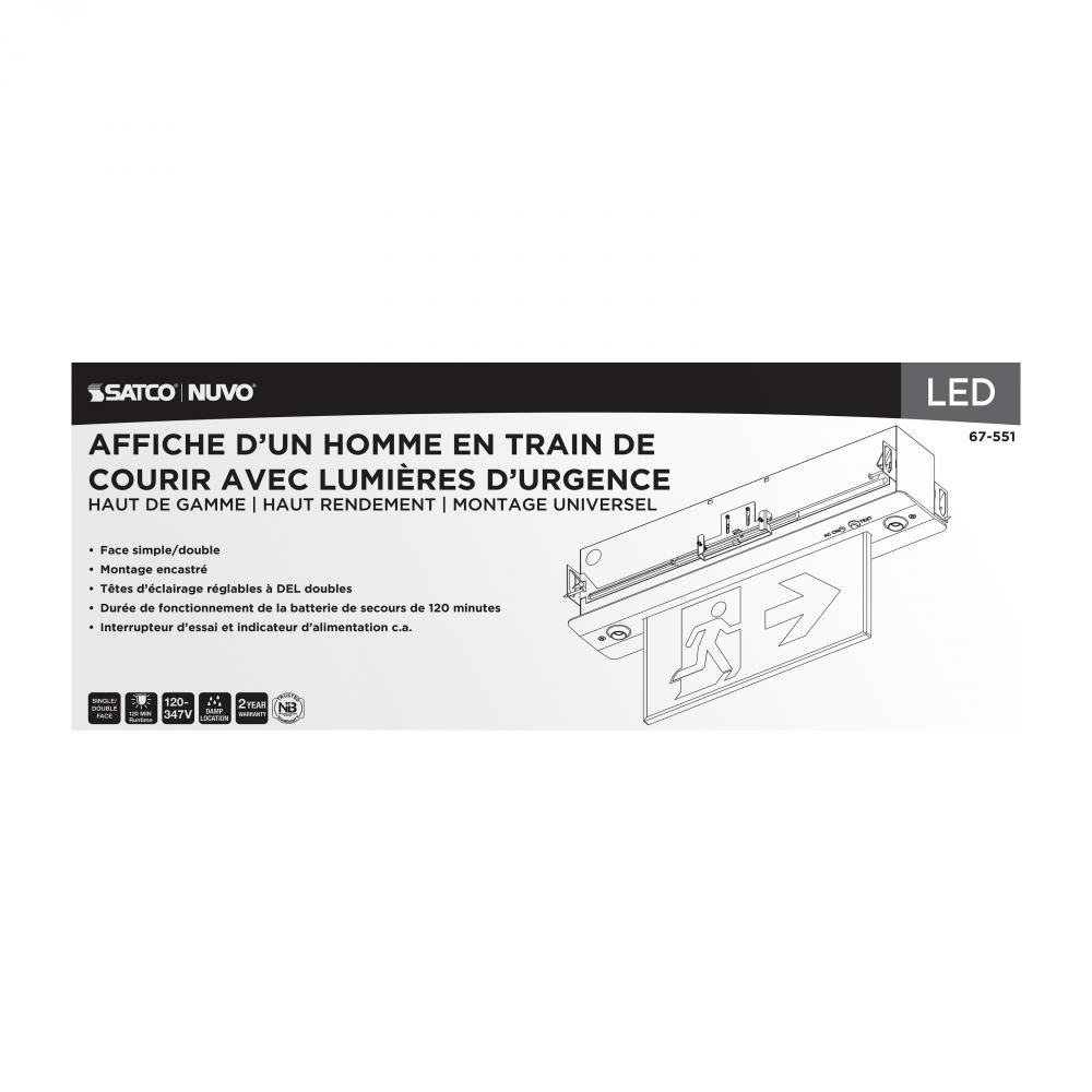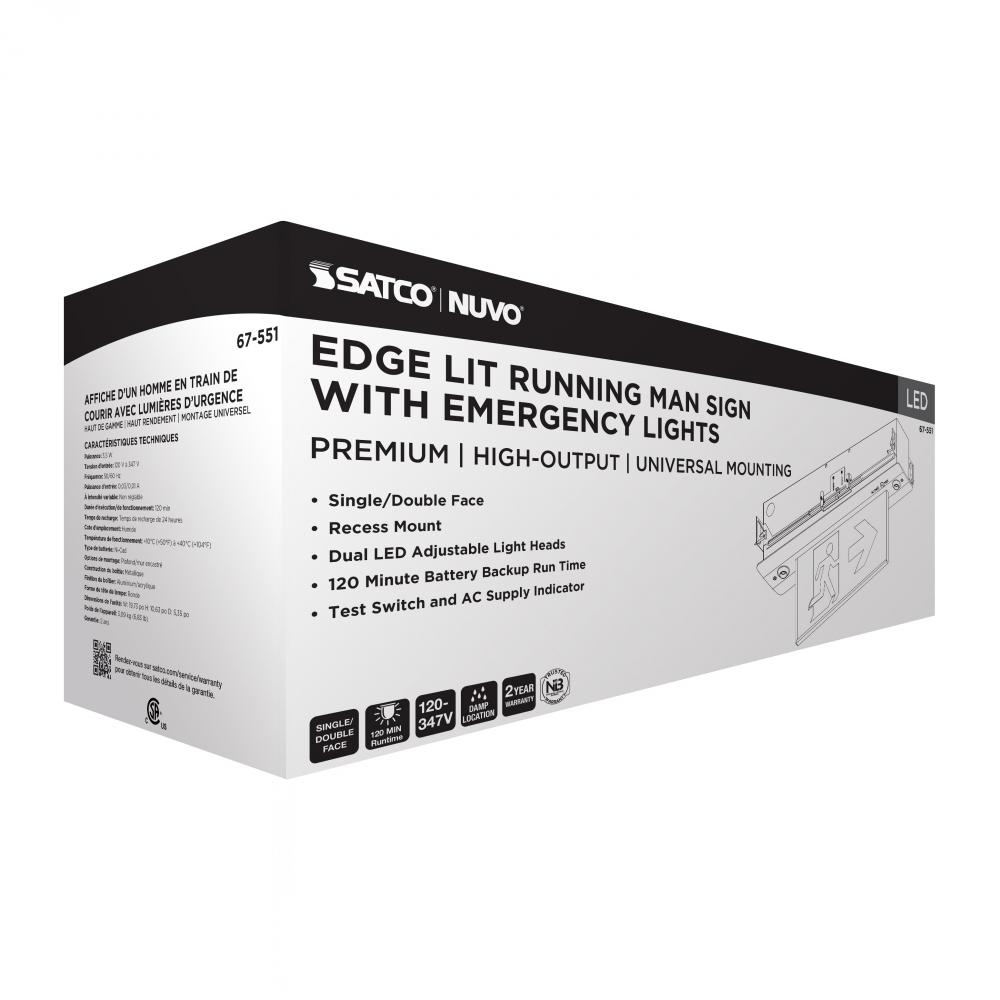 Keep your building safe and secure with the SATCO NUVO 67-551 LED Running Man Signs and Emergency Light Combos. These premium signs are field-customizable for single or dual face applications and include interchangeable pictogram films with direction arrow