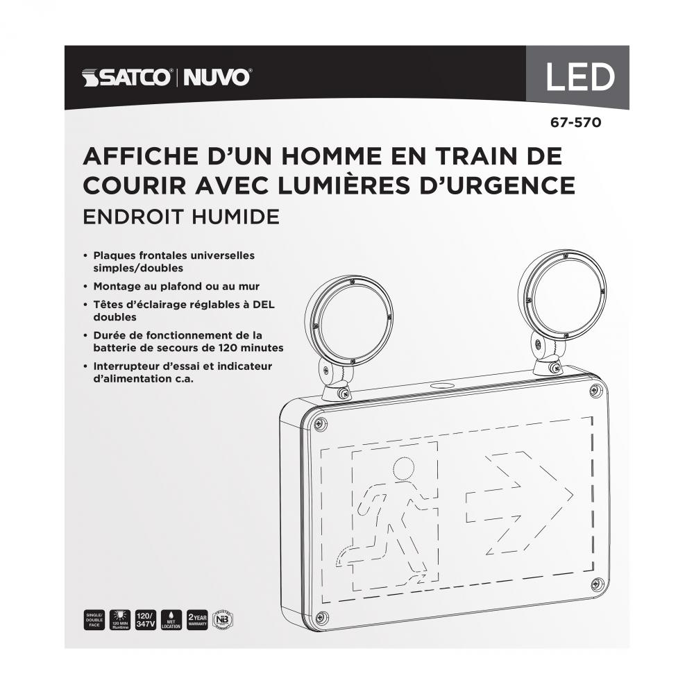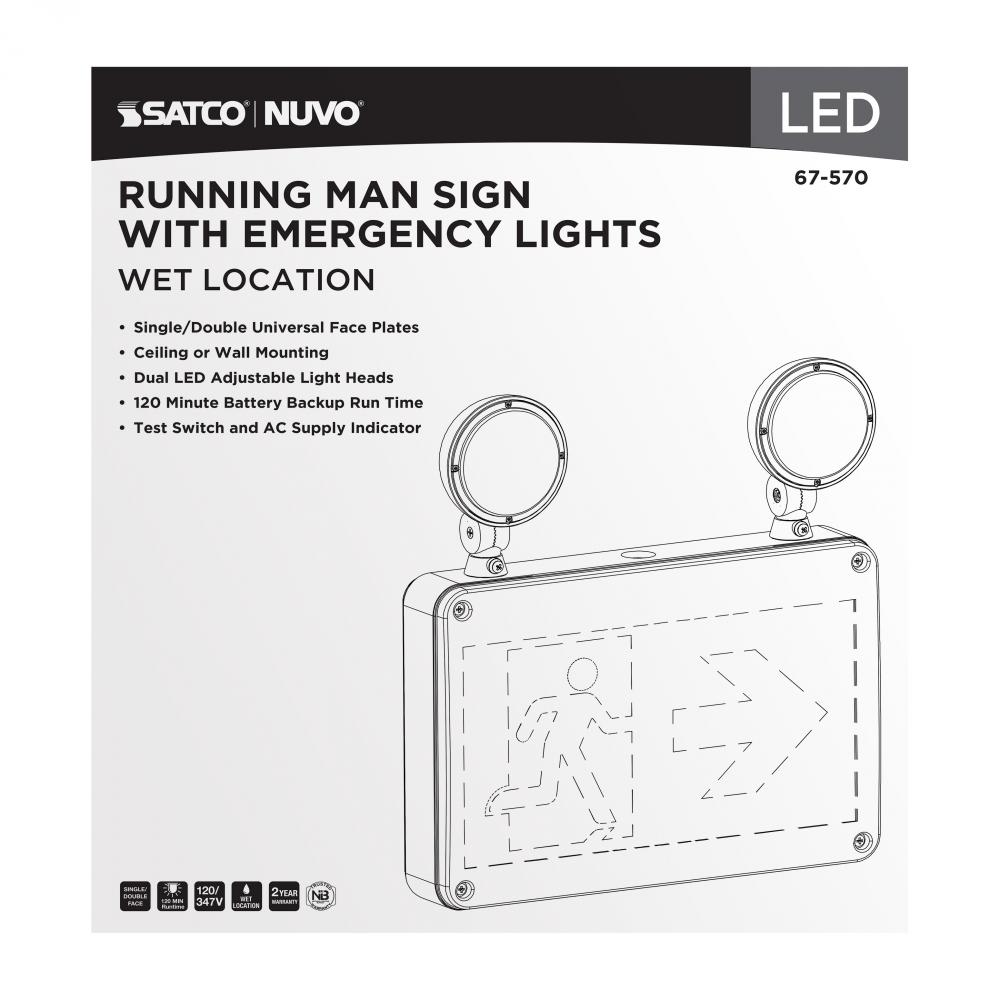 Keep your building safe and secure with the SATCO NUVO LED Running Man Signs and Emergency Light Combos. Choose single or dual-face installation and customize with the interchangeable pictograms to fit your needs. Combo models offer two adjustable light he
