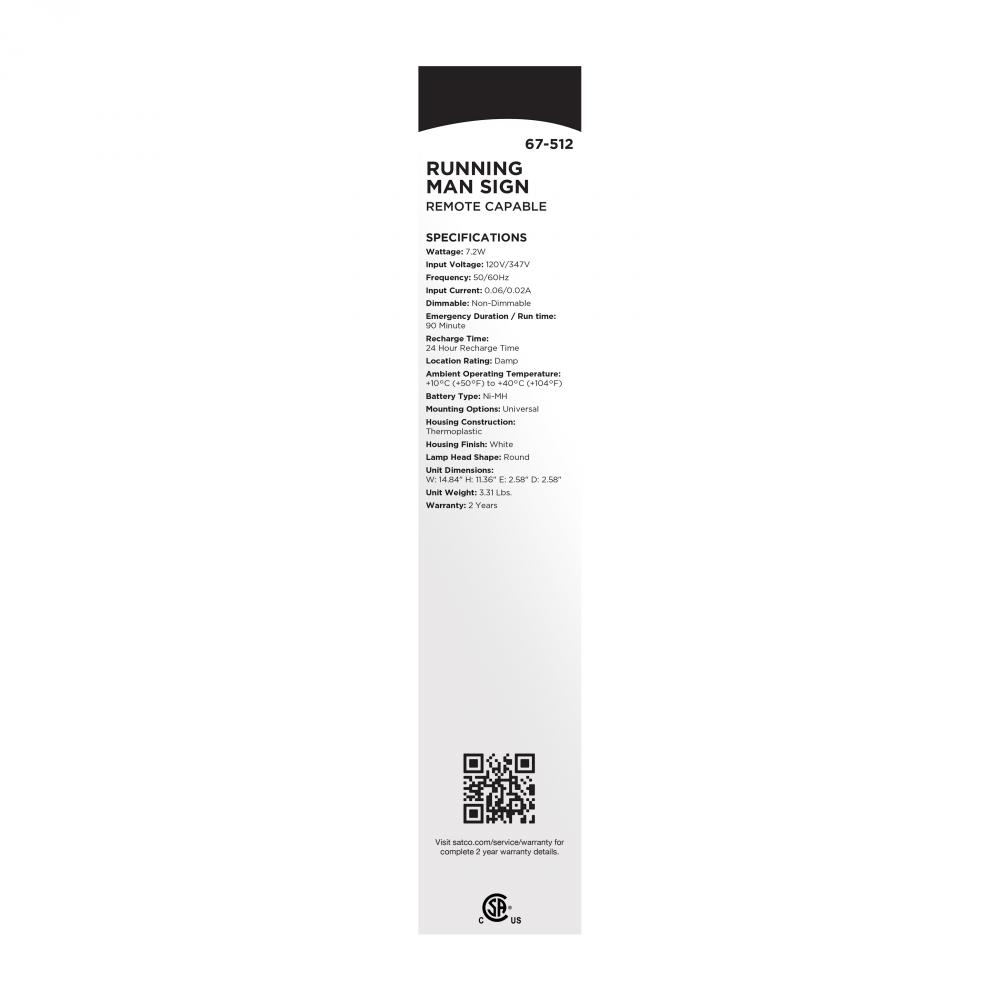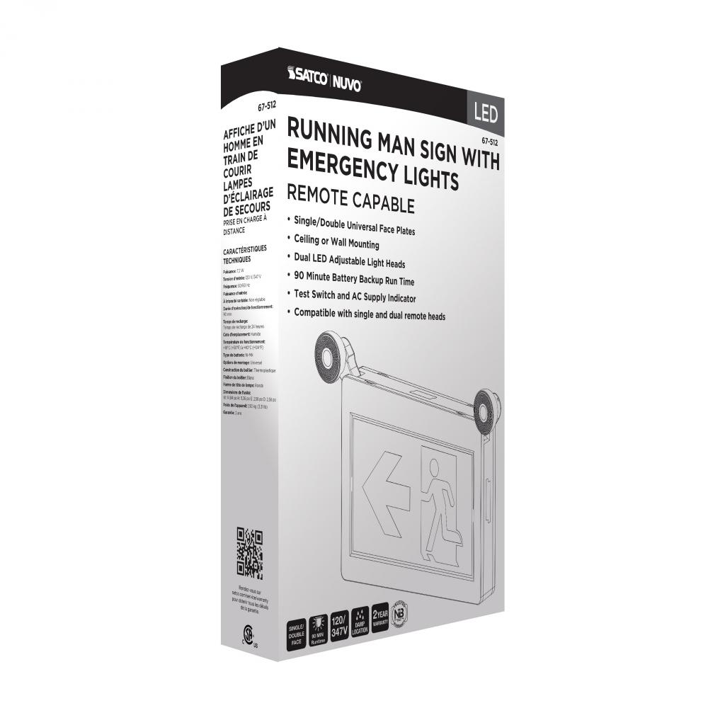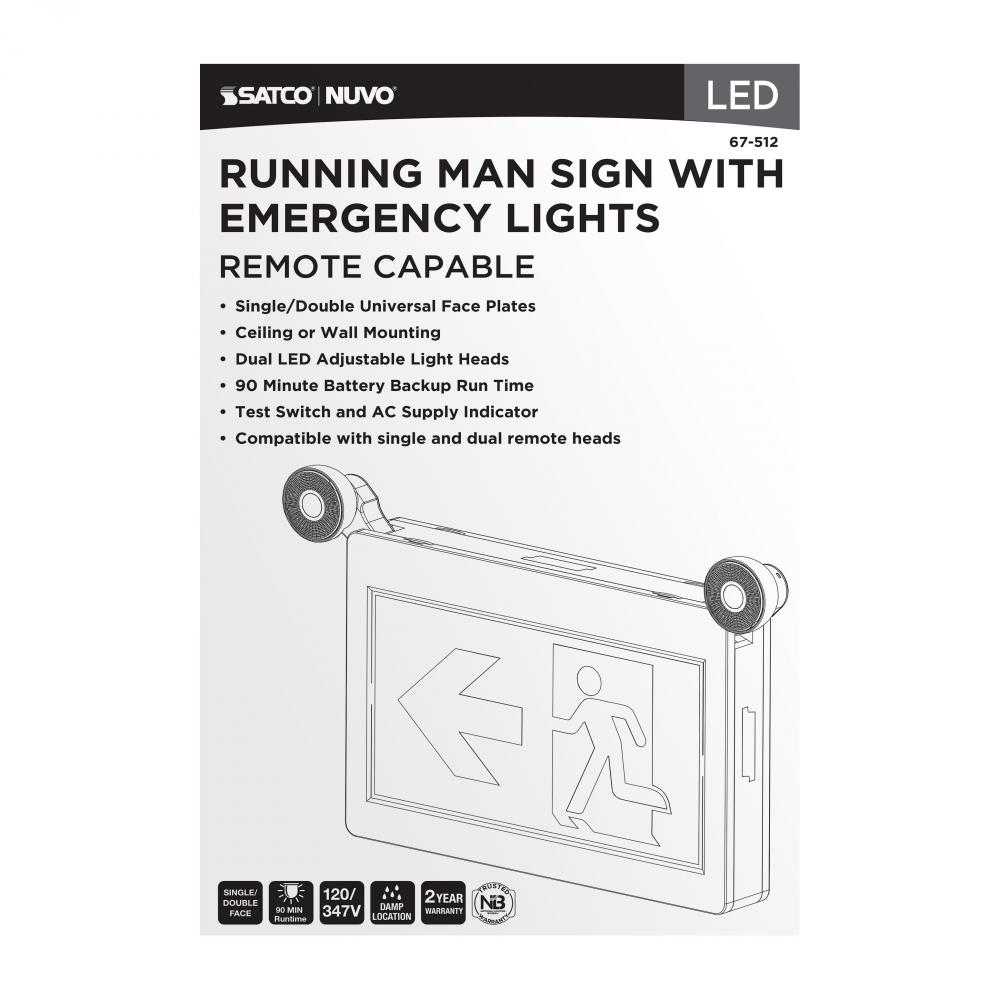 Running Man Green Combo Exit Sign/Emergency Light; 120/347V; 90min backup; Single/Dual Face; by Satco Products Inc.