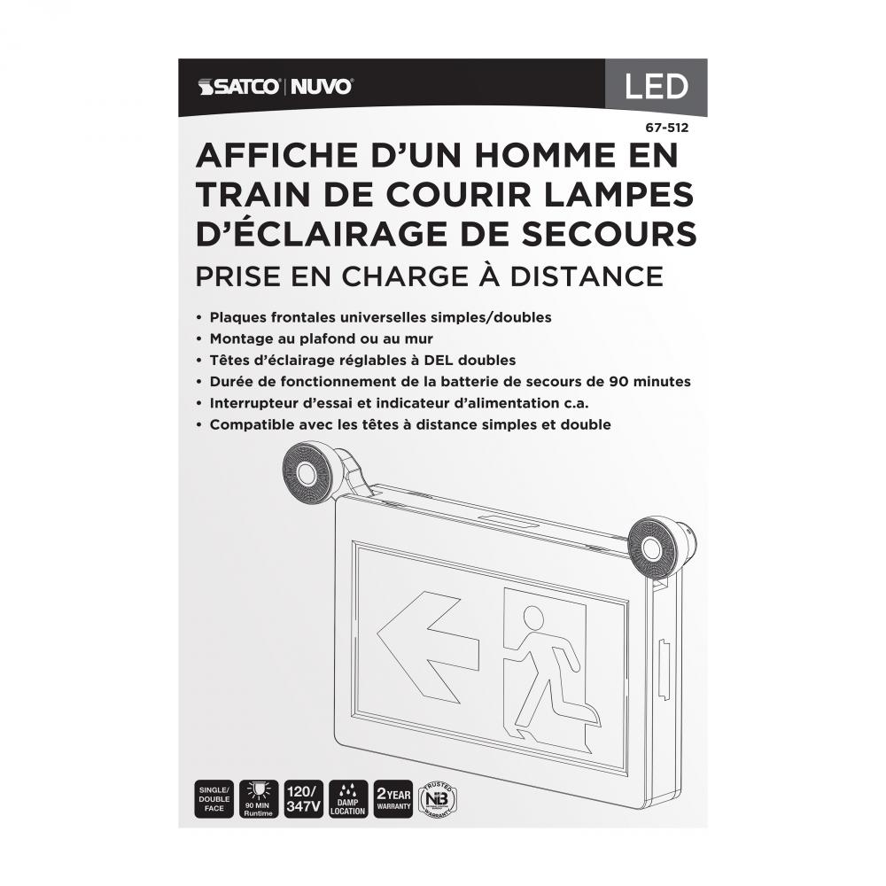 Keep your building safe and secure with the SATCO NUVO LED Running Man Signs and Emergency Light Combos. Choose single or dual-face installation and customize the interchangeable pictograms to fit your needs. Combo models offer two adjustable light heads t