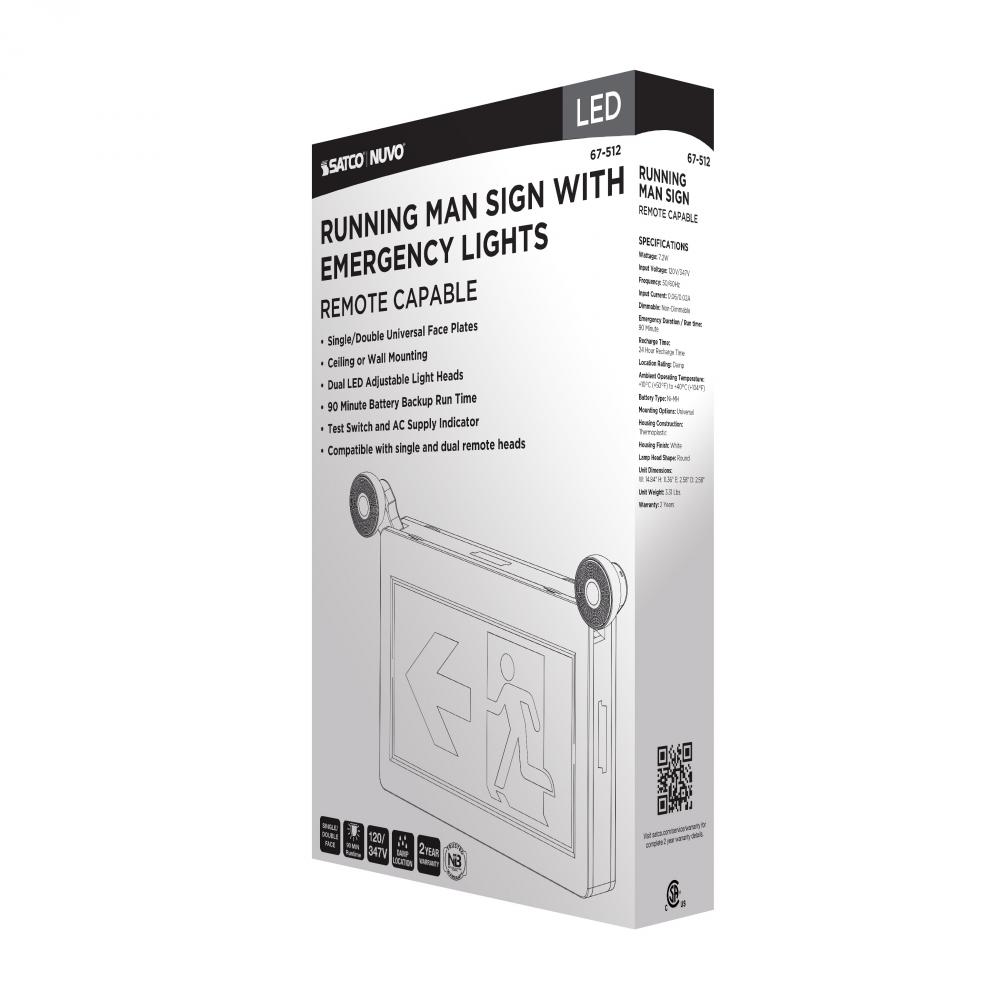 Keep your building safe and secure with the SATCO NUVO 67-512 LED Running Man Signs and Emergency Light Combos. Choose single or dual-face installation and customize the interchangeable pictograms to fit your needs. Combo models offer two adjustable light