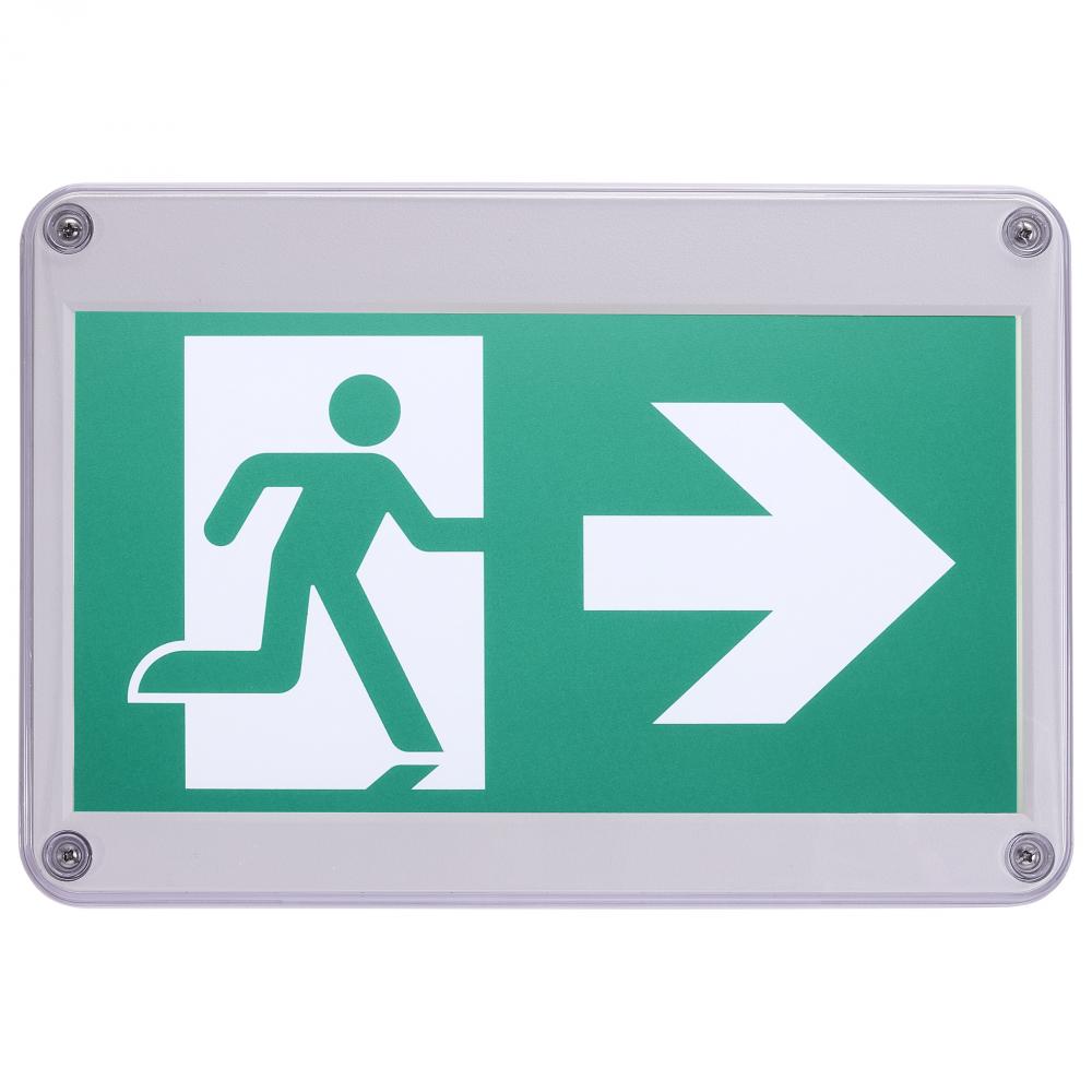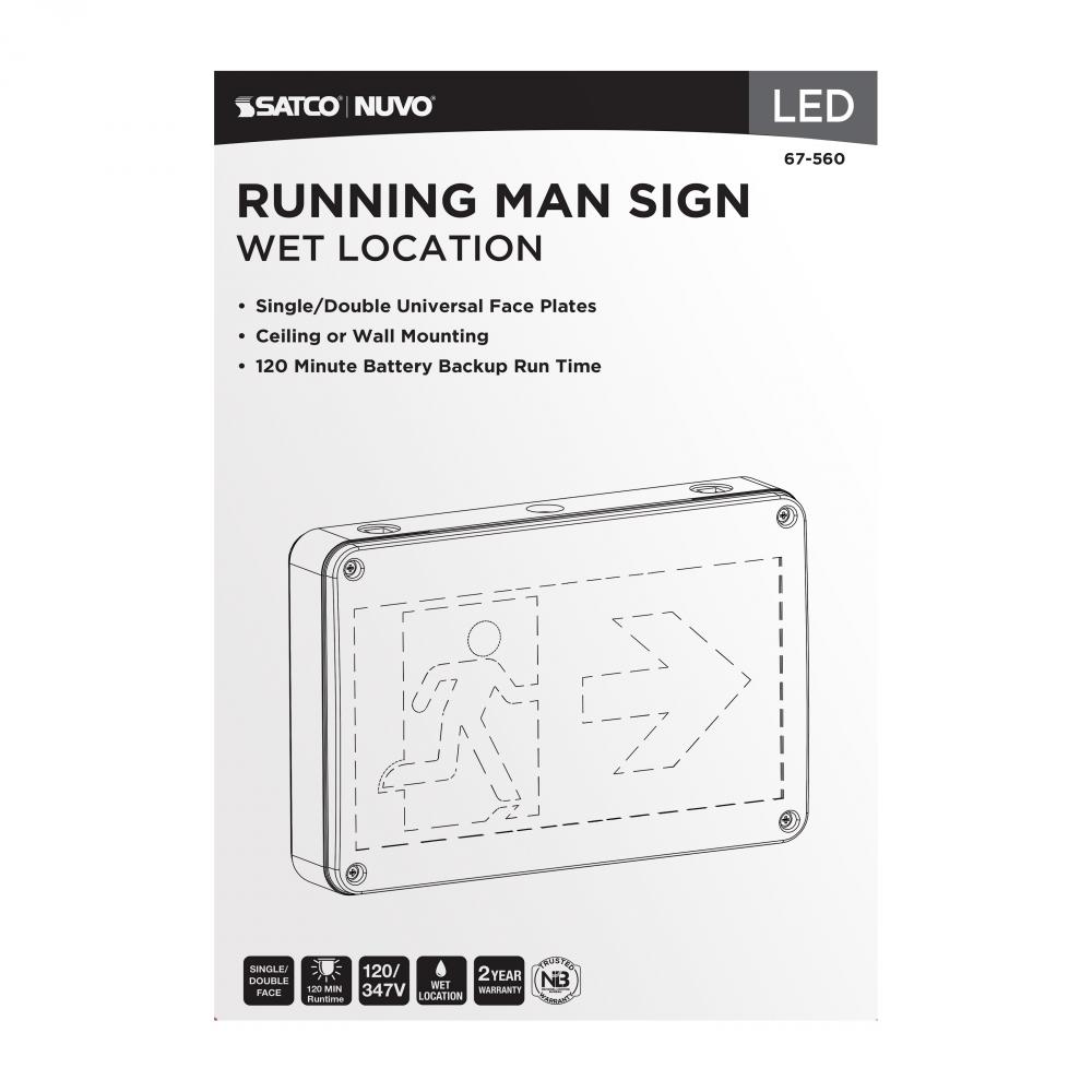 Running Man Green Exit Sign; 120/347V; 2HR backup; Single/Dual Face; Universal Mounting; Wet