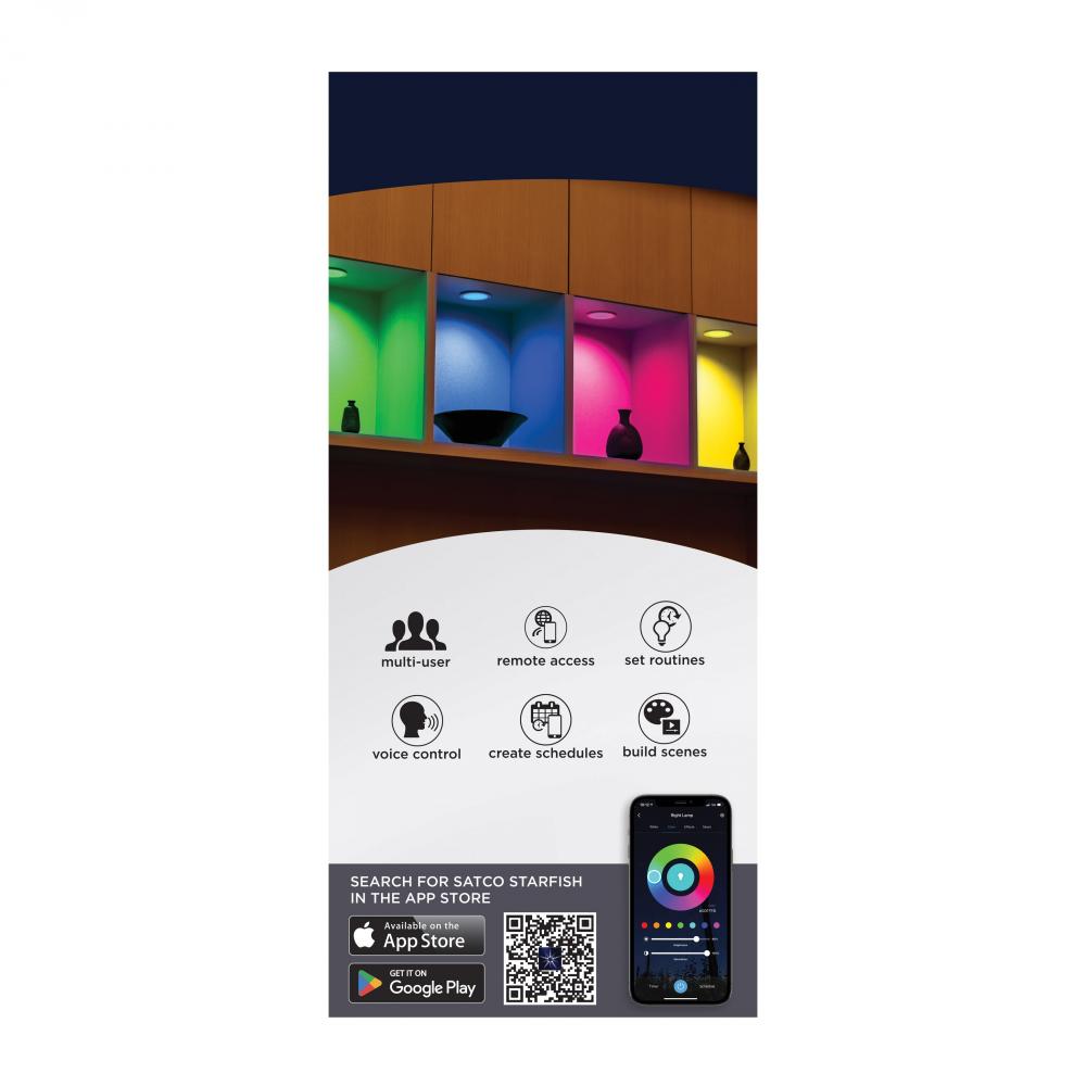 SATCO NUVO'S S11639 LED Retrofit Downlights with STARFISH technology are the ultimate choice for smart lighting and ambiance control. Download the STARFISH app to customize any tunable white color temperatures from 2000K warm white light to 5000K natur