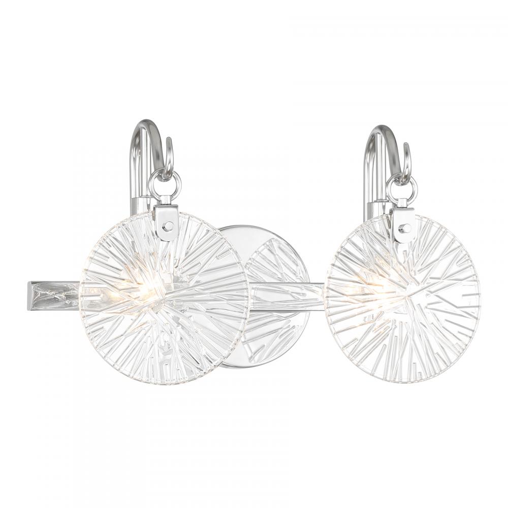 It is often said that lighting is the jewelry of the home. With its fun hook-style arms that hold flat, round, starburst clear glass shades, the Savoy House Addison 2-light bath light is a great example of this saying. The backplate is finished in Chrome and mimics the shape of the glass shades. Addison is 9" in height, 16" in width and extends 6.5" from the wall. Uses two candelabra size bulbs of up to 60 watts per bulb. Bulbs not included. This bath bar is damp area rated and must be installed as shown.