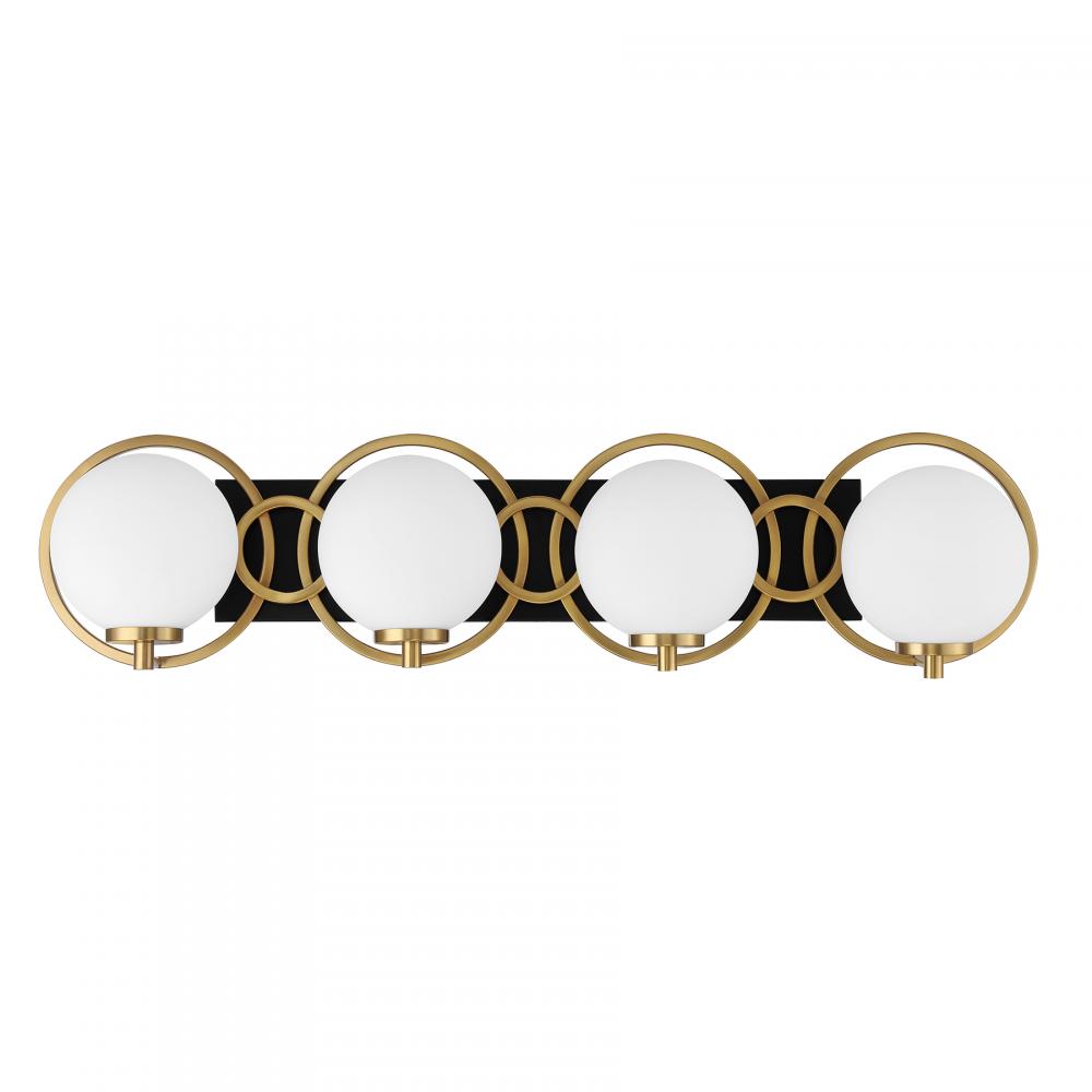 Alhambra 4-Light Bathroom Vanity Light in Matte Black with Warm Brass by Savoy House Canada
