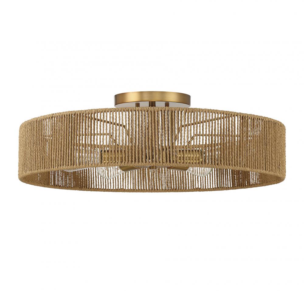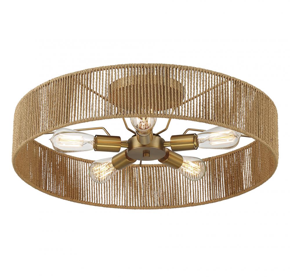 Ashe 5-Light Ceiling Light in Warm Brass and Rope by Savoy House Canada