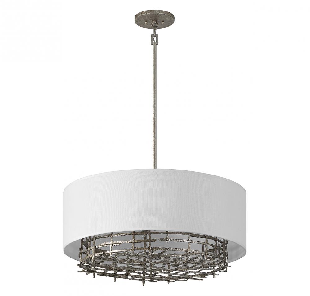 This Savoy House Cameo 6-light chandelier is proof that opposites attract. Its soft white linen shade and rough, nature-inspired detailing finished in champagne luxe create a perfect pair. Cameo is 12.5" in height and 28" in width. It uses 6 candelabra size bulbs of up to 60 watts per bulb (bulbs not included). Comes with four 12" downrods and one 6" downrod.