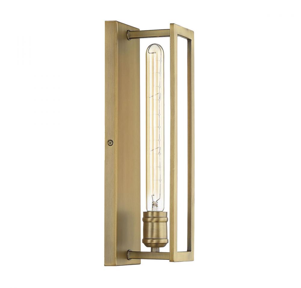 Put your bulb on full display like a piece of art in the Savoy House Clifton 1-light sconce. Its slim and tall style features a frame that calls attention to the exposed light source. Warm brass finish. Sconces add a touch of style and light to any wall, including but certainly not limited to hallways, entryways, stairways, great rooms and dining rooms. You will also often see a pair of sconces flanking a bathroom vanity mirror to provide an even, flattering wash of light. The warm brass finish can be paired with brass hardware or mixed with hardware in other fixtures. Add Clifton to contemporary style spaces or eclectic rooms with a little edge. When you choose a Savoy House lighting fixture, you can be certain you’ve selected a piece that will withstand the test of time.