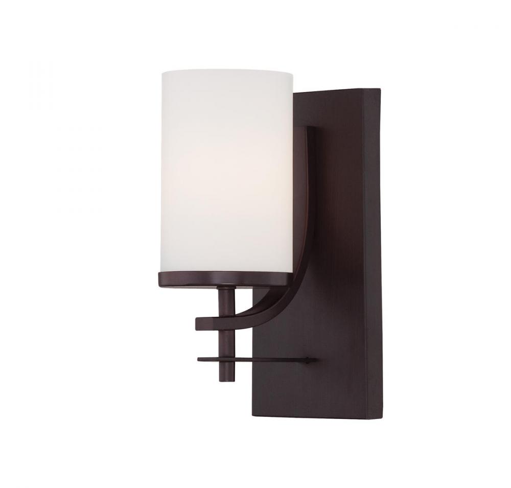 Good lighting is key to good home design. A great light fixture sets the mood, ensuring that everyone feels comfortable, and that’s exactly what the Colton does. It’s a sleek design made with Savoy House’s meticulous craftsmanship and high quality materials, creating a fixture with terrific performance and impeccable style. The graceful curved frame has streamlined detailing and an English bronze finish. A 60W standard size bulb sits within a cylindrical shade of lovely white opal glass to create a soothing, flattering and inviting glow. This sconce is 4.75" wide and 10" high, making it an elegant and timeless style for your dining room, kitchen, living room, family room, bedroom, bathroom, foyer, great room, office, stairway or game room.