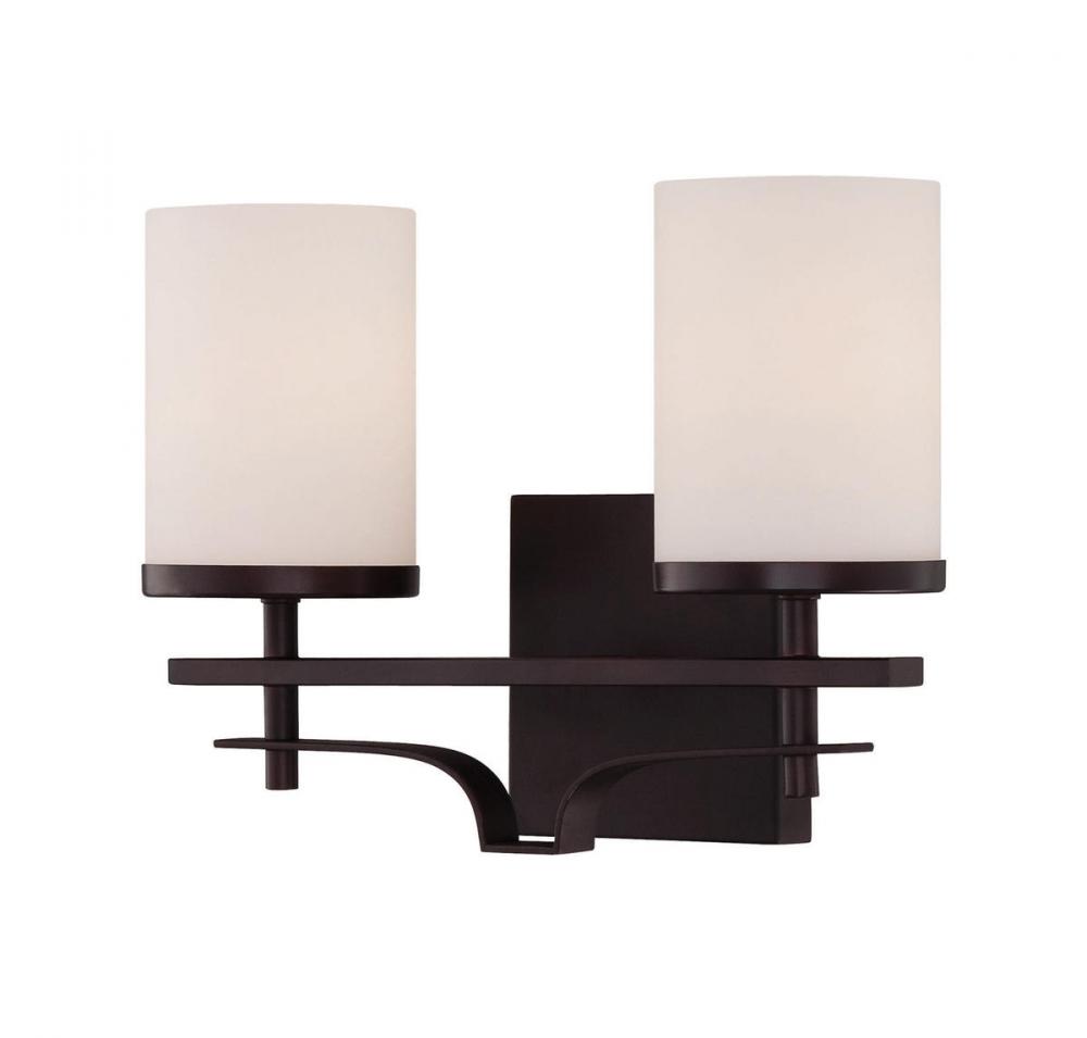 Good lighting is key to good home design. A great light fixture sets the mood, ensuring that everyone feels comfortable, and that’s exactly what the Colton does. It’s a sleek design made with Savoy House’s meticulous craftsmanship and high quality materials, creating a fixture with terrific performance and impeccable style. The graceful curved frame has streamlined detailing and an English bronze finish. Two 60W standard size bulbs sit within cylindrical shades of lovely white opal glass to create a soothing, flattering and inviting glow. This bath light is 13.5" wide and 9" high, making it an elegant and timeless style for your bathroom or powder room.