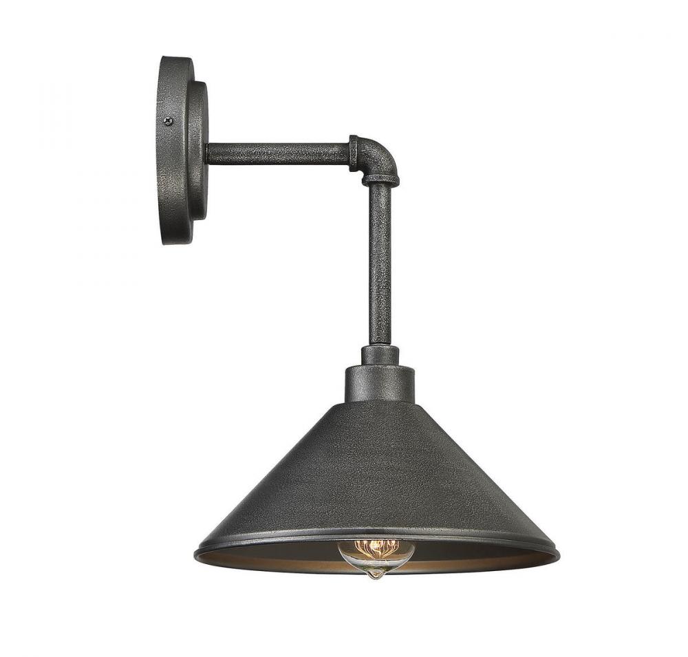 The Savoy House Dansk 1-light sconce takes its cue from old factories with an industrial-inspired design that is solid and practical, yet streamlined and stylish for today’s decor. This sconce has pipe-like detailing, a round wall plate and a clean-lined, funnel-shaped shade, all with a galvanized metal finish. One 60W standard size bulb provides ample illumination and using an exposed filament or Edison bulb will add to the vintage, utilitarian appeal. This fixture is 8” wide, 13” high and extends 10” from the wall. It’s perfect for understated, industrial style in your kitchen, dining area, family room, entryway, great room, bedroom, game room, office or hallway. And it’s UL rated for damp locations, so it may be used in your bathroom or powder room, too.