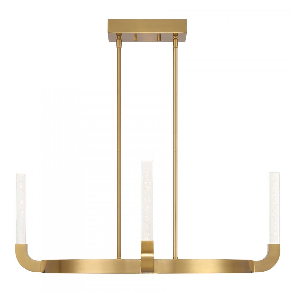 The Savoy House Del Mar 4-light chandelier was designed by Breegan Jane, an award-winning interior designer and TV host. Its sleek and slim structure is a stunning example of how Breegan's designs bring the drama without overtaking the room. LED light shines through clear seeded acrylic batons, adding eye-catching texture. Finished in Warm Brass. Del Mar is 30" in width and has an adjustable height ranging from 11.25" to 55.25. Comes with four 12" downrods and one 6" downrod.