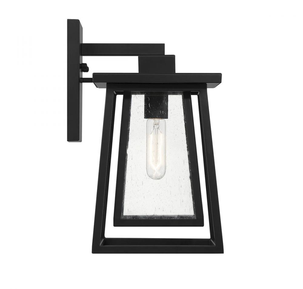 Boost your curb appeal and create a great first impression with the Craftsman-inspired style of the Savoy House Denver 1-light outdoor wall lantern. Clear seedy glass and a matte black finish make Denver a great choice for lighting up today's fashionable homes. This fixture is 15" in height, 8" in width and extends 9.5" from the wall. It uses one standard size bulb with a max of 60 watts. Wet area rated.