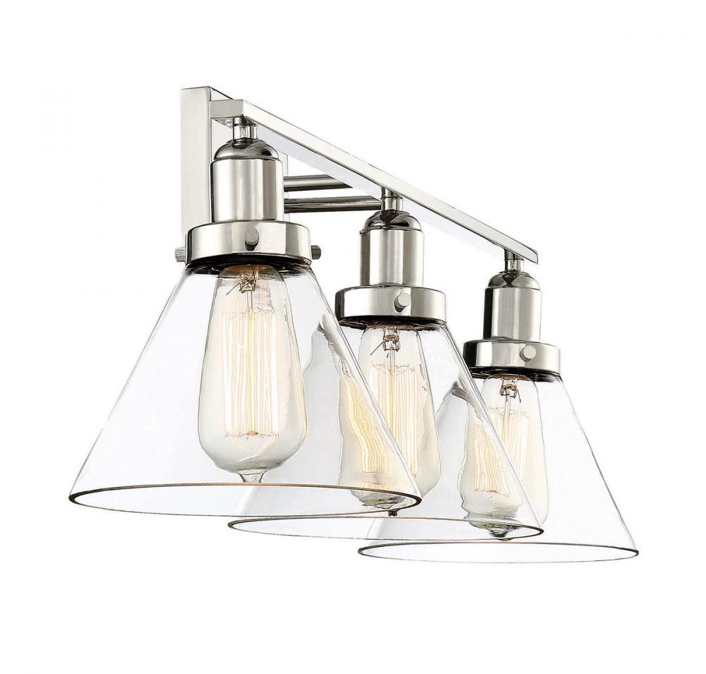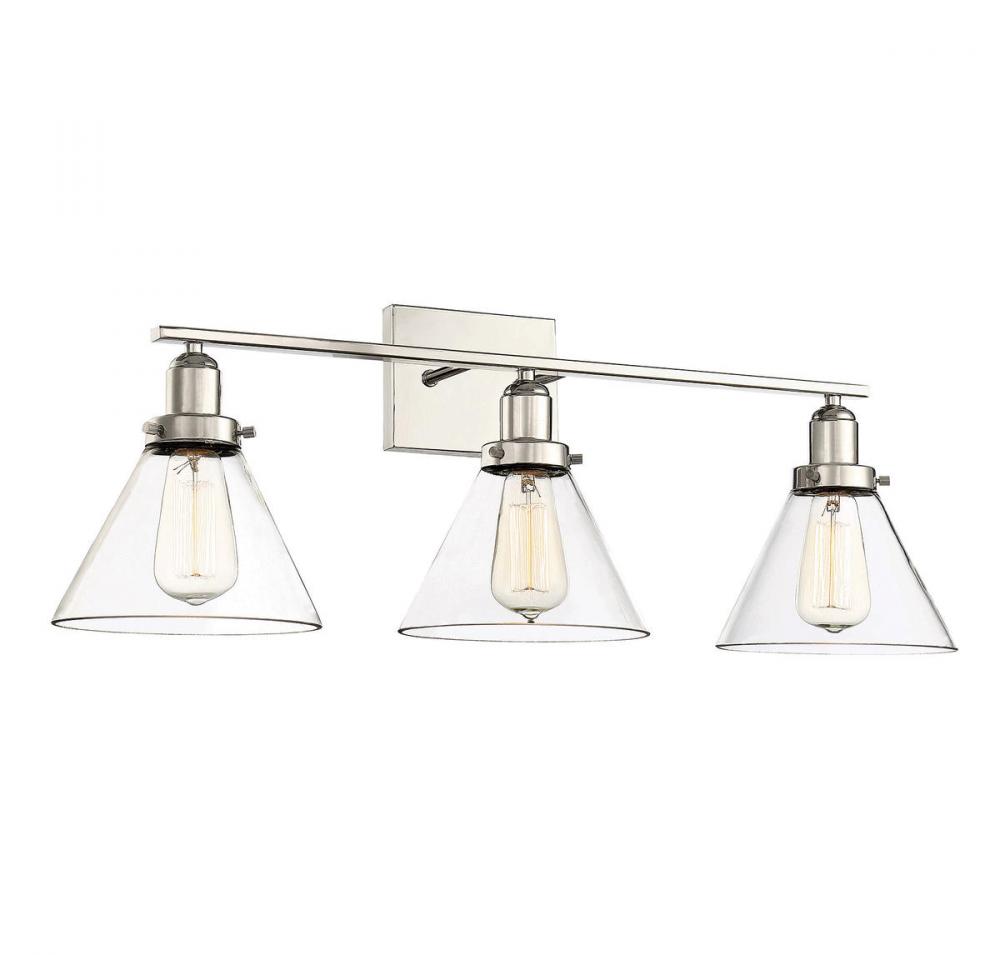This Savoy House Drake 3-light bath bar has an alluringly simple style with a few choice hardware details and shades of clear glass. It may be mounted as either uplight or downlight. Bath bar lights are a classic choice for illuminating vanity mirrors in bathrooms big and small. Because the bulbs are exposed, try using stylized bulbs (not included) such as Edison for a different look! The polished nickel finish can be paired with nickel hardware or mixed with hardware in other fixtures. Add Drake to industrial, transitional or contemporary rooms for a bold look. When you choose a Savoy House lighting fixture, you can be certain you’ve selected a piece that will withstand the test of time.