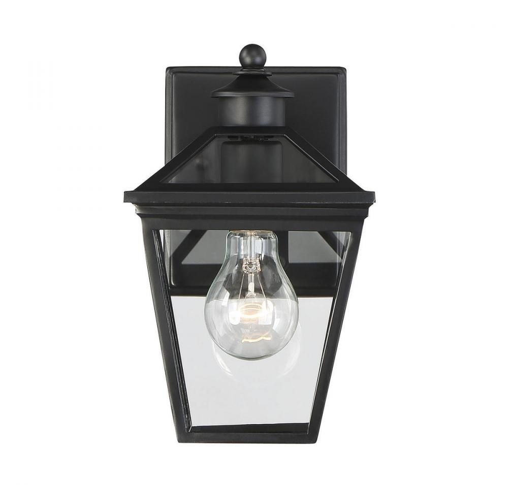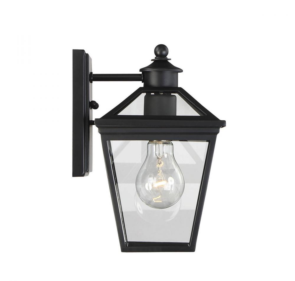 Brighten the exterior of your home and welcome your guests in style with the Savoy House Ellijay 1-light outdoor wall lantern. The design mimics a vintage gas lantern with a classic tapered box shape and decorative top finial. The black finish looks terrific and blends well with other hardware and architectural materials. Panes of clear glass fill all four side panels and the roof panels, too. One 60W standard size bulb provides inviting and secure illumination. This lantern measures 6" wide, 9.75" high and extends 7" from the wall. You’ll enjoy its timeless style and enhance the beauty of your property, whether on your porch, patio, sunroom, pergola or other outdoor walls in your garden and yard.