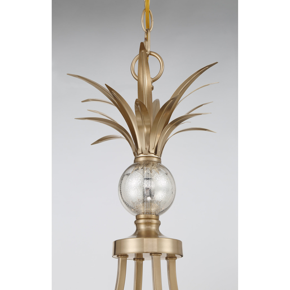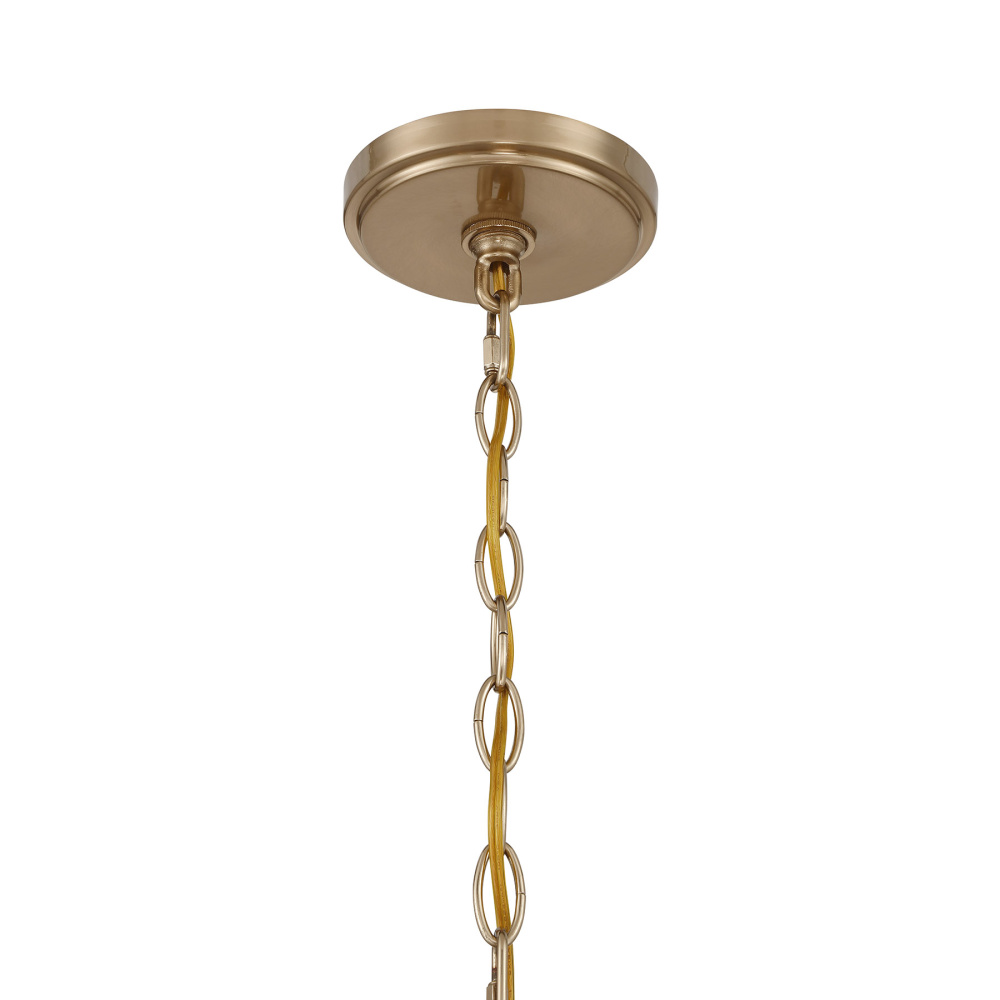 The Savoy House Hearst 8-light chandelier is a timeless and elegant design adorned with intriguing details. Discs of antique glass bring in a big dose of textural intrigue while a crown of tall leaves at the top of the fixture imparts a welcoming feeling. The rich Noble Brass finish makes this chandelier perfectly suited for illuminating any space. Hearst is 28.625" in height and 33" in width. It uses eight candelabra size bulbs of up to 60 watts per bulb. Bulbs not included. Comes with 120" of chain and 144" of cord.