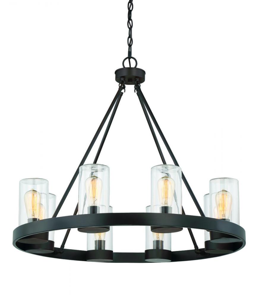 Outdoor living spaces deserve stylish lighting like this Savoy House Inman 8-light chandelier. The lights are on full display, but protected by clear cylindrical glass shades, and offset with an English bronze finish. Damp area rated, so this light can be used in covered outdoor areas. Outdoor chandeliers turn spaces like porches and patios into exterior living spaces! Since the bulbs are exposed, try using stylized bulbs (not included) like tubular shape or Edison style for a different look. The English bronze finish can be matched with bronze hardware or mixed with hardware in other finishes. Inman has a versatile look that makes it an excellent choice for a variety of decor styles. When you choose a Savoy House lighting fixture, you can be certain you’ve selected a piece that will withstand the test of time.