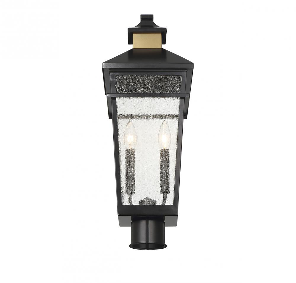 Kingsley 2-Light Outdoor Post Lantern in Matte Black with Warm Brass Accents by Savoy House Canada