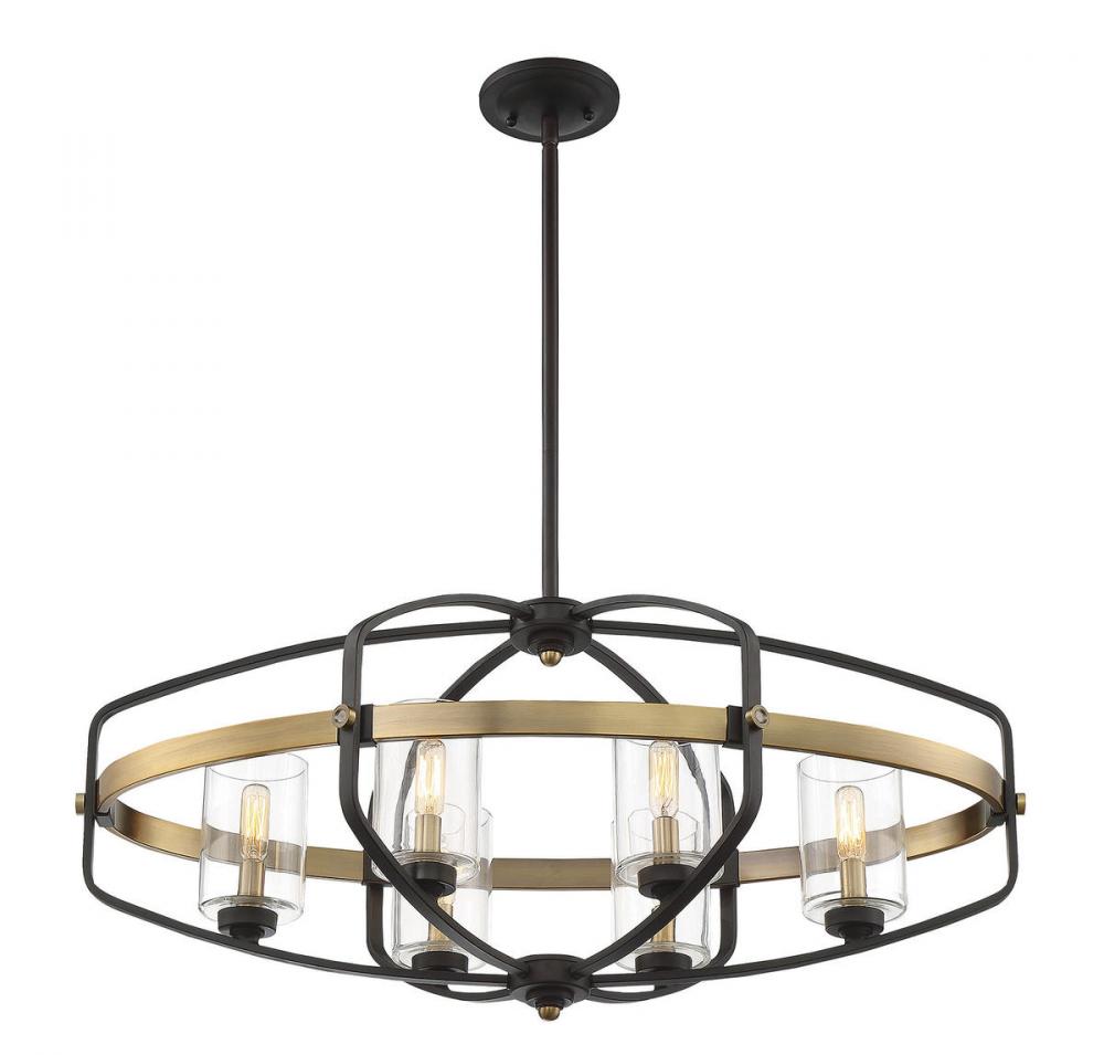 The Savoy House Kirkland 6-light linear chandelier offers edgy, architectural style that is perfect for today's fashionable interiors. Its English bronze finish is accentuated by touches of warm brass for two-tone allure. Linear chandeliers are ideal for use over rectangular dining room tables or kitchen islands, but you can also use them in living rooms, great rooms, over pool tables and in media rooms, too. This fixture can be hung from a sloped ceiling as well. Since the bulbs are exposed, try using stylized bulbs (not included) like tubular shape or Edison style for a different look! Kirkland can pair with hardware finished in black or brass, but you can also mix it with hardware in other finishes. It is great for rooms with industrial, transitional or contemporary design touches. When you choose a Savoy House lighting fixture, you can be certain you’ve selected a piece that will withstand the test of time.