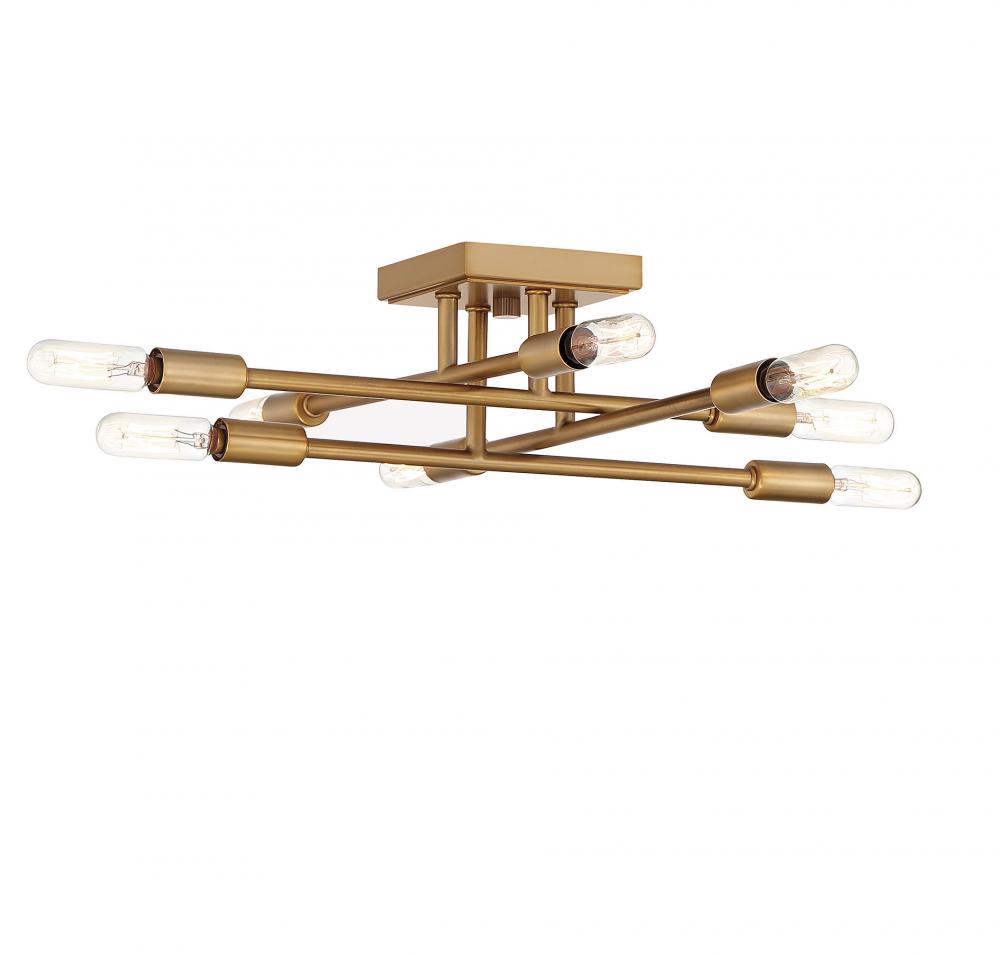 The open, structured look of the Savoy House Lyrique 8-light ceiling semi-flush mount is a great choice for today's stylish interiors. Finished in warm brass. Semi-flush mounts can be used on the ceiling of pretty much any interior room, including foyers, hallways, stairways, closets, bathrooms, bedrooms, kitchens and more! Bulbs not included. Try using stylized bulbs like Edison or tubular for a different look! The brass finish can be matched with brass or gold hardware or mixed with hardware in other finishes. Lyrique is perfect for contemporary style spaces and any room that has an edgy touch. When you choose a Savoy House lighting fixture, you can be certain you’ve selected a piece that will withstand the test of time.