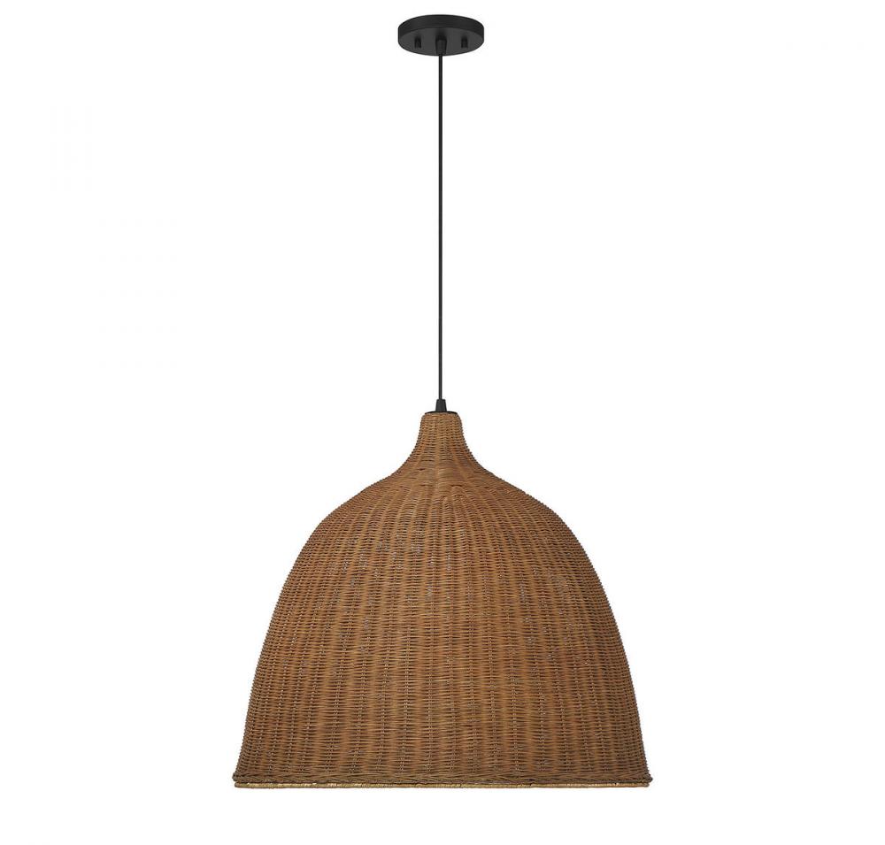 The Savoy House Macra 3-light pendant draws style inspiration from the beauty and craftwork of woven baskets. It features a wide, large shade of dark brown wicker that will illuminate any room beautifully. The simple hardware, in a Cafe finish, allows the basket shade to take center stage. Macra is 23" wide and has an adjustable height ranging from 21" to 141". It uses three standard size bulbs of up to 60 watts per bulb. Comes with 120" of cord.