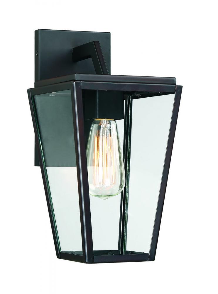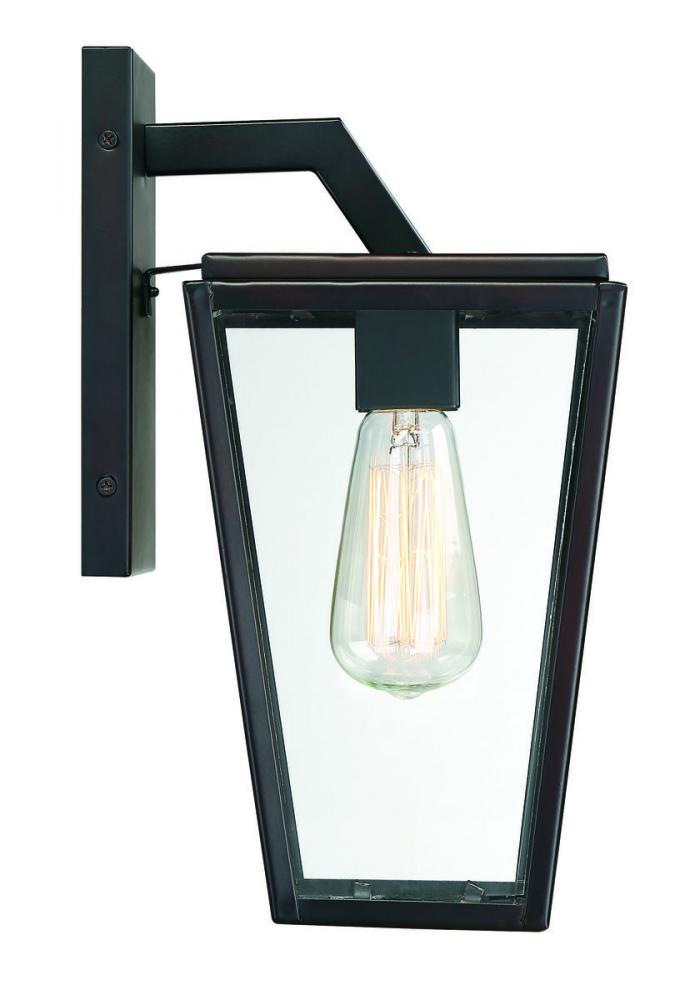 Sleek, contemporary and welcoming light is all yours with the Savoy House Milton 1-light outdoor wall lantern. It’s a fresh, modern take on a classic tapered-box lantern with clean lines and an angular, geometric silhouette. The streamlined frame has a rich English bronze finish and pristine panes of clear glass. It’s an impeccable complement to other hardware and materials on the exterior of your home. Within the lantern panels, one 60W standard size bulb illuminates the area. Milton measures 6.5" wide and 12.75" high and extends 8" from the wall, making it perfect to add chic lighting to the walls of your patio, porch, sunroom or other outdoor living areas. Wet area rated.