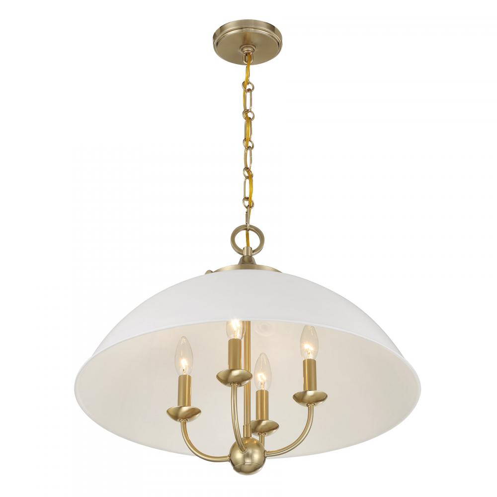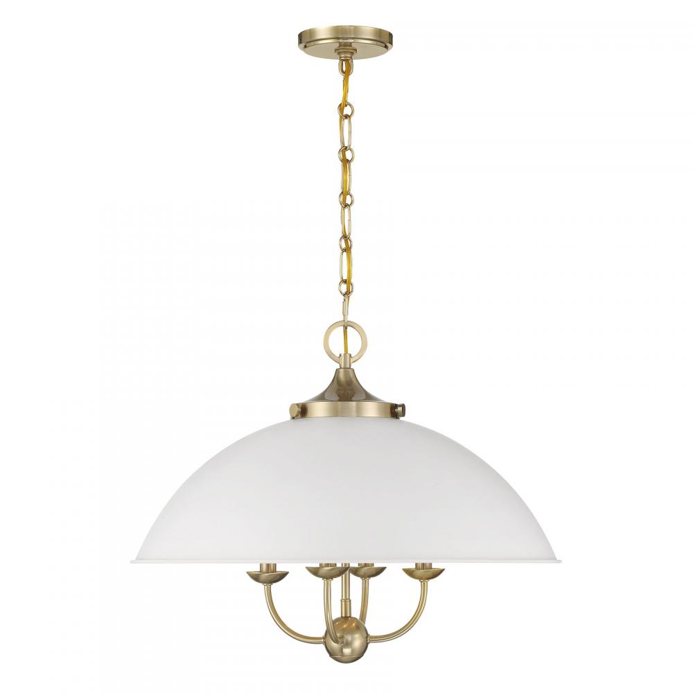 Monterey 4-Light Pendant in White and Warm Brass