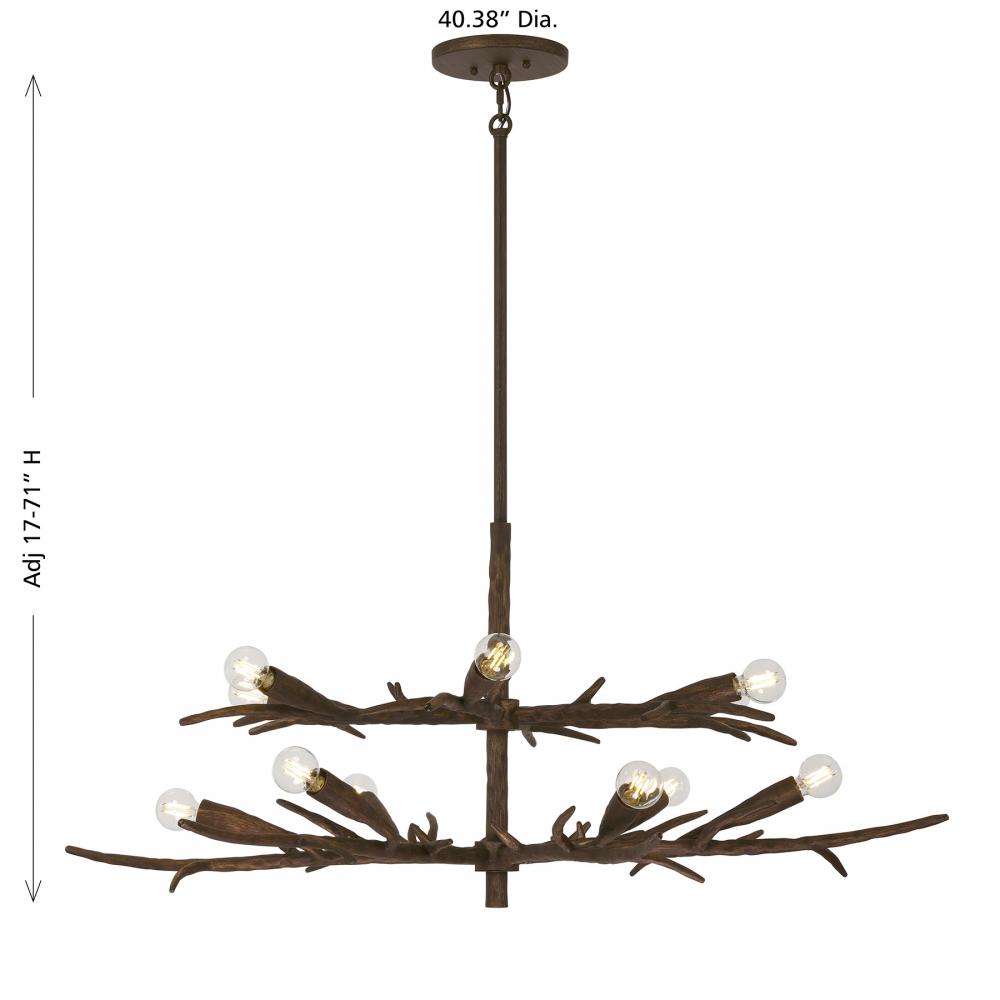 The Savoy House Palisades 12-light pendant was designed by award-winning interior designer and TV host Breegan Jane. It is named for Pacific Palisades, a picturesque neighborhood of Los Angeles. The branching, organically inspired arms are crafted from hammered metal and finished by hand in Bark, a dark bronze finish that imparts texture and intrigue. Palisades is 40.38" in width and has an adjustable height ranging from 17" to 71". It uses twelve candelabra size bulbs of up to 60 watts per bulb. Bulbs not included. Comes with four 12" downrods and one 6" downrod.