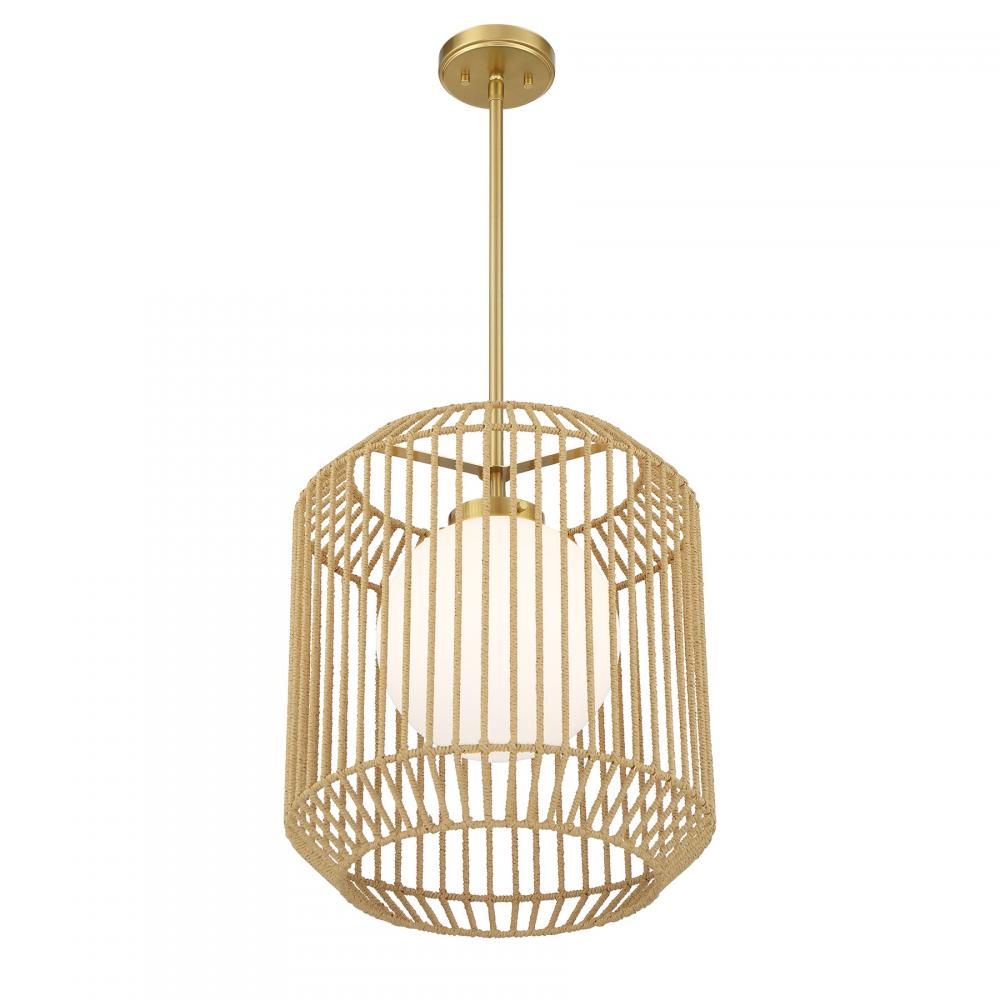 The Savoy House Pastis 1-light pendant beautifully blends a world of inspirations to create a picture-perfect lighting look. A cage-like shade is woven with natural rattan that adds terrifically touchable texture. An orb of white glass brings a bright glow that is amplified by the Warm Brass finish. Pastis is 16" in width and has an adjustable height ranging from 17.25" to 71.25". Uses one standard size bulb of up to 60 watts. Bulb not included. Comes with four 12" downrods and one 6" downrod.