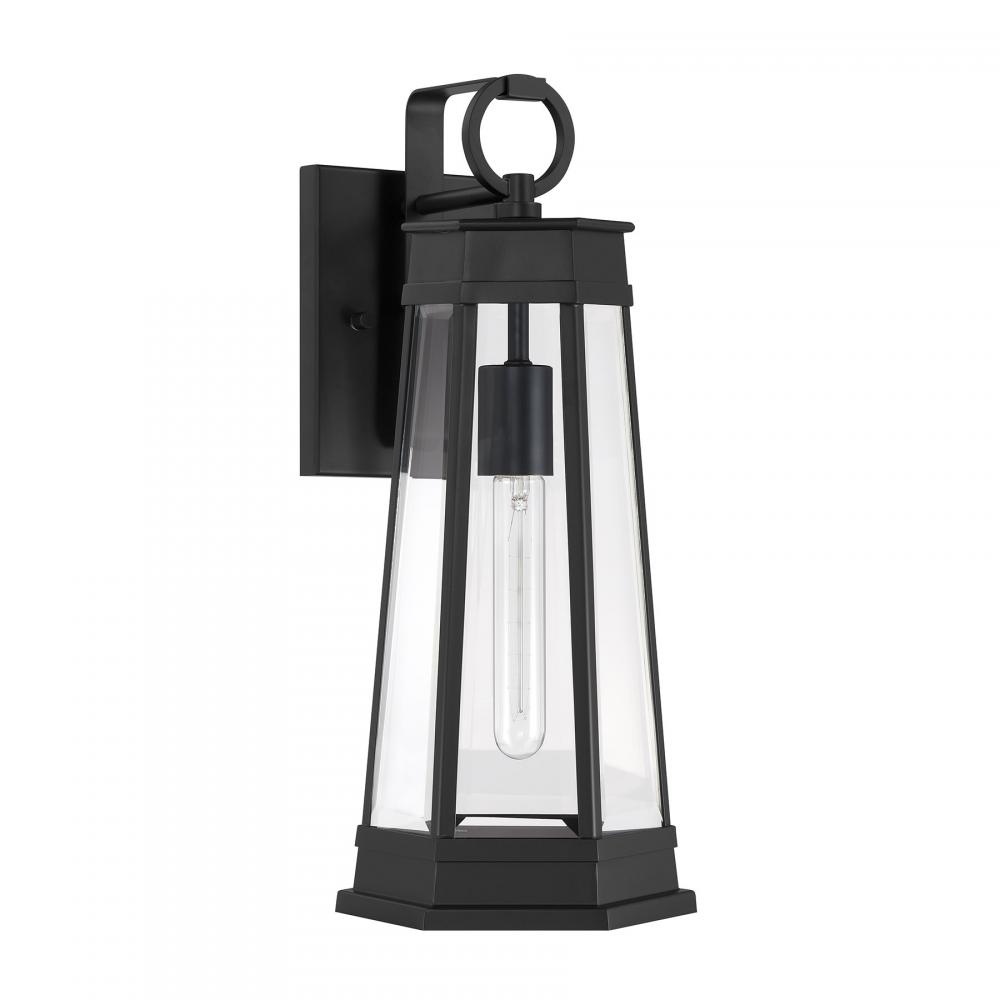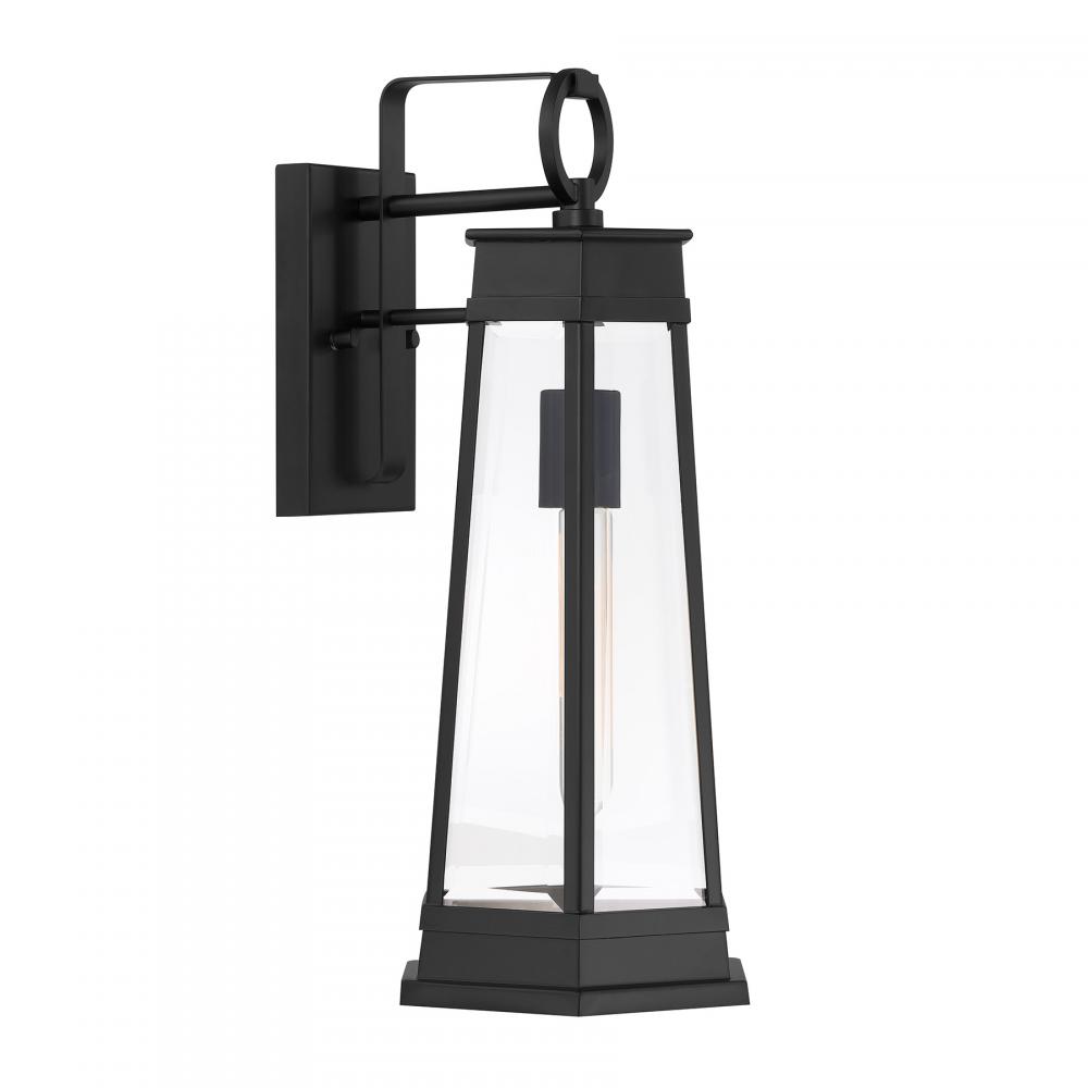 Light the way home with the terrific transitional style of the Savoy House Payne 1-light outdoor wall sconce. It has standout style thanks to panes of clear beveled glass, thoughtful geometric detailing and a versatile Matte Black finish. Use it solo or in groupings to create a great first impression. Payne is 18.5" in height, 6.75" in width and extends 9.25" from the wall. Uses one standard size bulb of up to 60 watts. Bulb not included. Payne is wet area rated for use in covered or uncovered outdoor areas.
