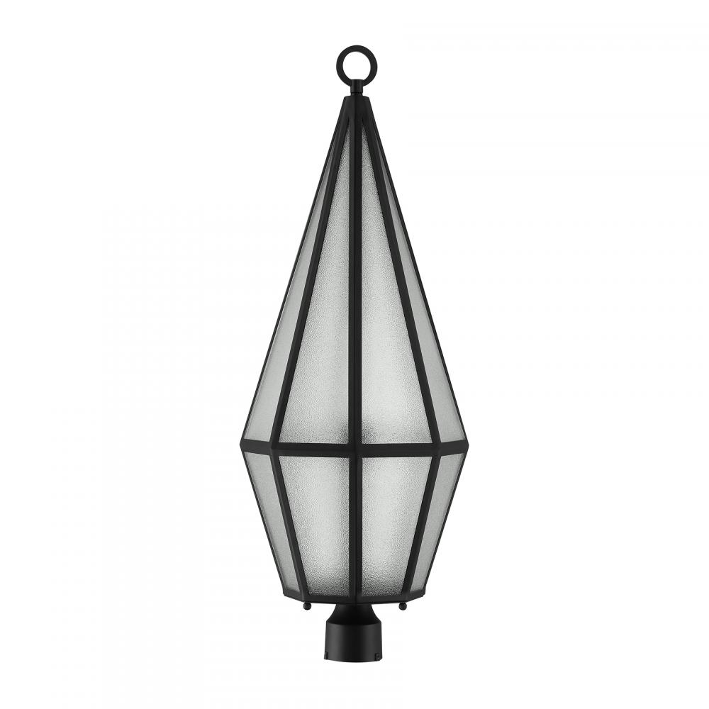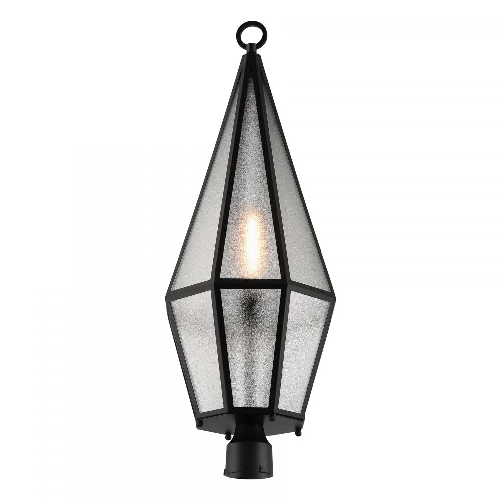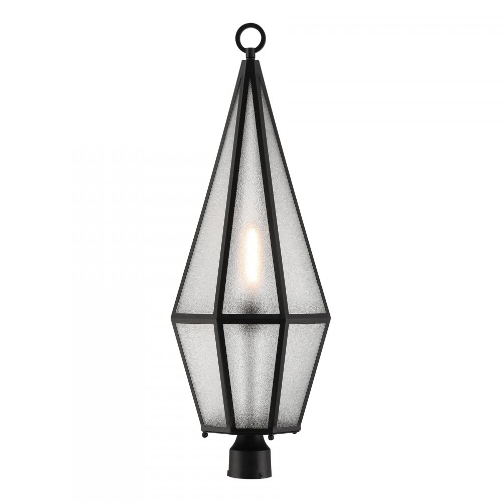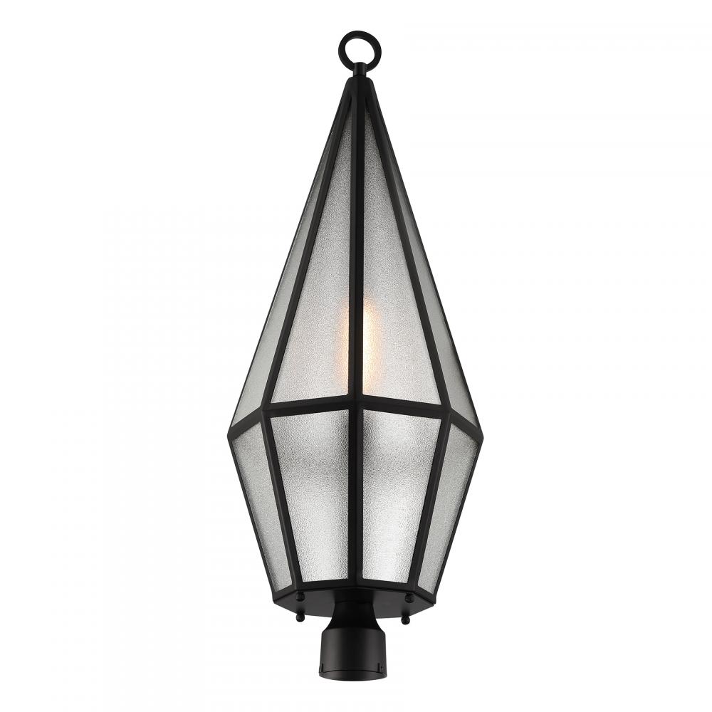 Decorate your great outdoors with the highly glamorous Savoy House Peninsula 1-light outdoor post lantern. Its tall, slim, diamond-like design showcases panes of art glass that obscure the light within and create lots of eye-catching texture. Matte Black finish. Peninsula is 36" in height and 12" in width. Uses one standard size bulb of up to 60 watts. The bulb is not included. Wet area rated.