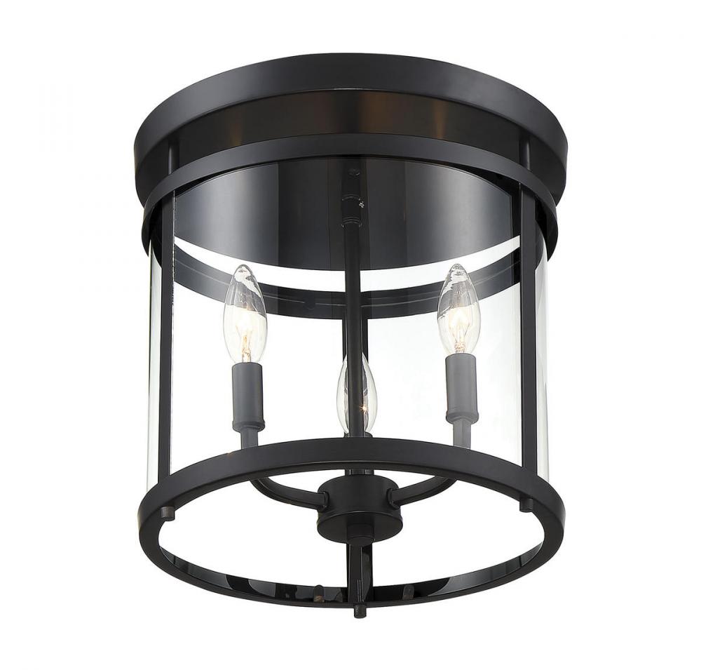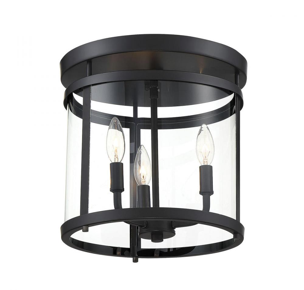 This sleek, cylindrical Penrose 3-light ceiling semi-flush mount from Savoy House is an excellent choice for lovers of stylish modern design. It features clear glass and is finished in bold matte black. Semi-flush mounts can be used on the ceiling of pretty much any interior room, including foyers, hallways, stairways, closets, bedrooms, kitchens and more! Bulbs not included. Try using stylized bulbs like Edison or tubular bulbs for a different look! The matte black finish can be matched with black hardware or mixed with hardware in other finishes. Bring Penrose into rooms of any style, especially transitional or classic, for a big touch of lighting allure. When you choose a Savoy House lighting fixture, you can be certain you've selected a piece that will withstand the test of time.