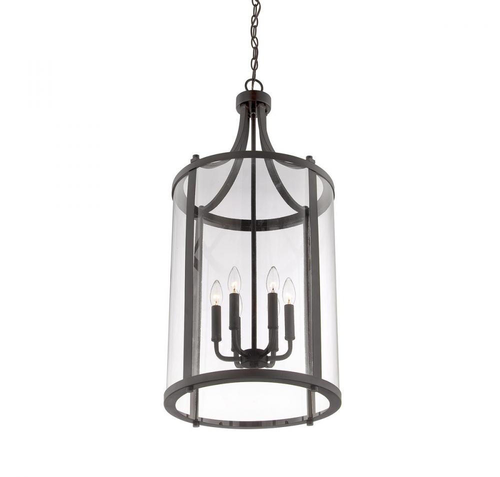 This sleek, cylindrical Penrose 6-light foyer light from Savoy House is an excellent choice for lovers of stylish modern design. It features clear glass and is finished in bold English bronze. Foyer lights are often used in foyers and entryways, but can also be used in great rooms, kitchens, offices and bedrooms too! Bulbs not included. Try using stylized bulbs for a different look! The English bronze finish can be matched with bronze hardware or mixed with hardware in other finishes. Bring Penrose into rooms of any style, especially transitional or classic, for a big touch of lighting allure. When you choose a Savoy House lighting fixture, you can be certain you've selected a piece that will withstand the test of time.