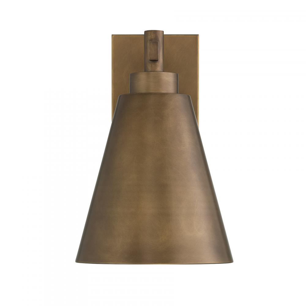 The rustic-inspired Savoy House Ryder 1-light outdoor wall sconce is a stylish light that gives off a considerate glow. Its solid metal shade is finished in Atlas Bronze and has a design that reduces light pollution through concentration and direction, making it Dark Sky friendly. Ryder is 15" in height, 10" in width and extends 11" from the wall. Uses one standard size bulb of up to 60 watts. Bulb not included. Ryder is wet area rated for use in covered or uncovered outdoor areas.