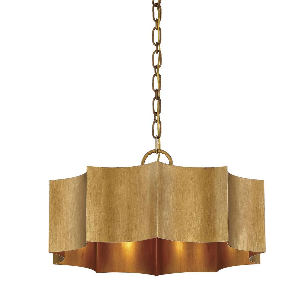 Alluring, upscale and completely unique, the Shelby 3-light pendant from Savoy House is ready to grace your home with elegant, unparalleled style. A single band of gold patina finished metal, delicately crimped around its circumference for intriguing dimension, is the shining star of this simple yet striking contemporary light fixture. Appropriate for almost any spot in the home, it’s a break from tradition in kitchens and dining rooms and a welcome surprise as bedroom, entry or bath lighting. Compatible with transitional and mid-century modern interiors, the Shelby pendant light is also perfect for pairing with contrasting metals like silver cabinet hardware and wall art to easily achieve today’s popular mixed metal decorating trend.
