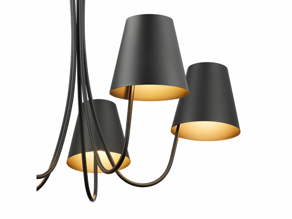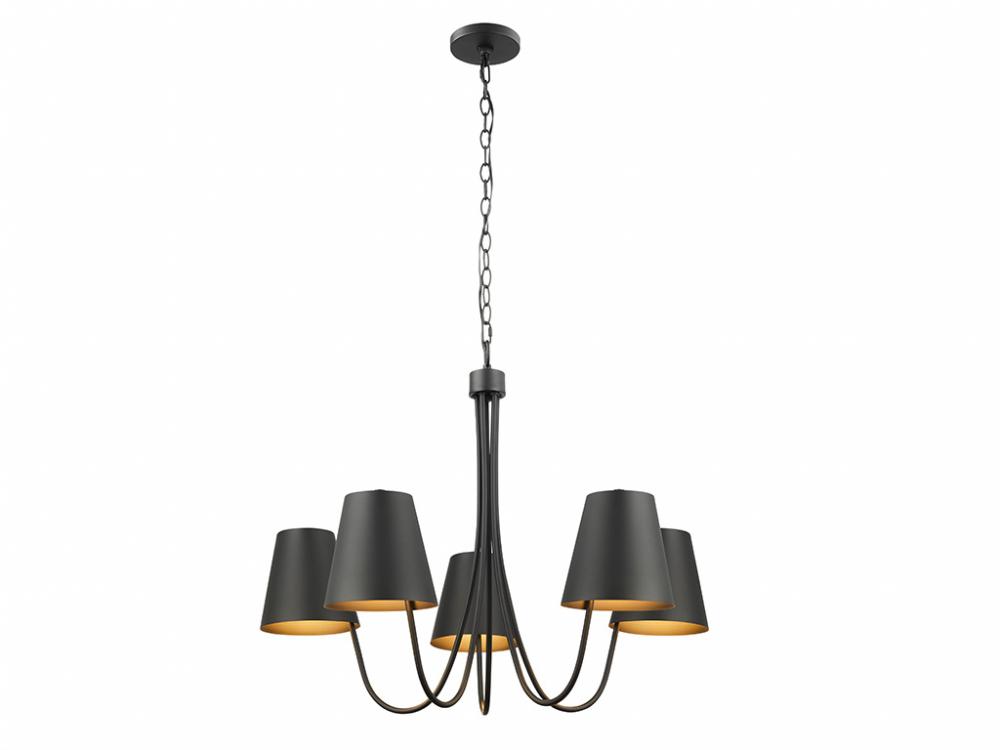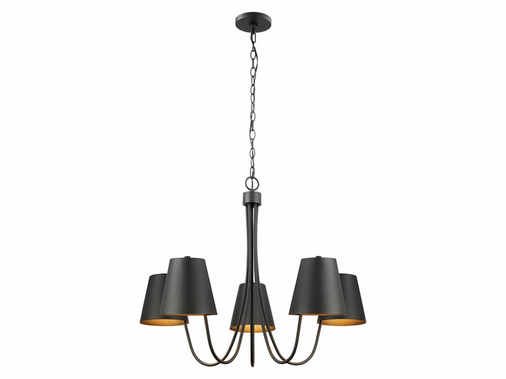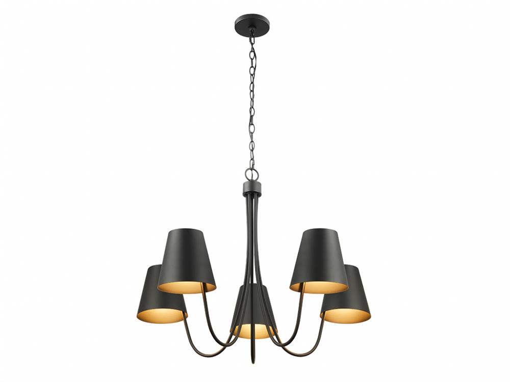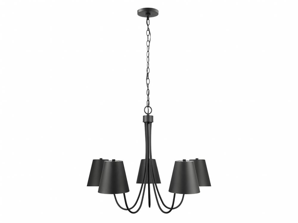 Go for the glow with this striking 5-light chandelier, which is finished from top to bottom in Matte Black. Because the metal shades are opaque, this is a great way to create concentrated and dramatic illumination. It is 23" in height and 32" in width. Uses five candelabra size bulbs of up to 60 watts per bulb. Bulbs not included.