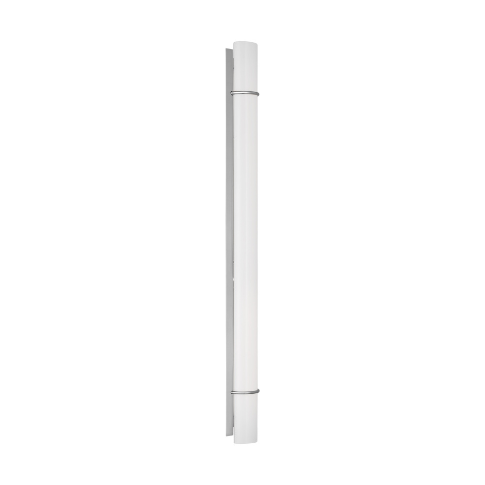 The Amelie Integrated LED vanity series by Chapman & Myers is a simplified cylindrical linear bath light with two metal rings inspired by a vintage cuff bracelet. Each sconce has a cylindrical glass shade accented by two metal rings on either end of the sconce and a metal back plate. Amelie is illuminated with custom-led panels to provide an even glow through the white glass shades. Available in three sizes and three finish options. Dimmable Integrated LED lamping with Damp location rating.