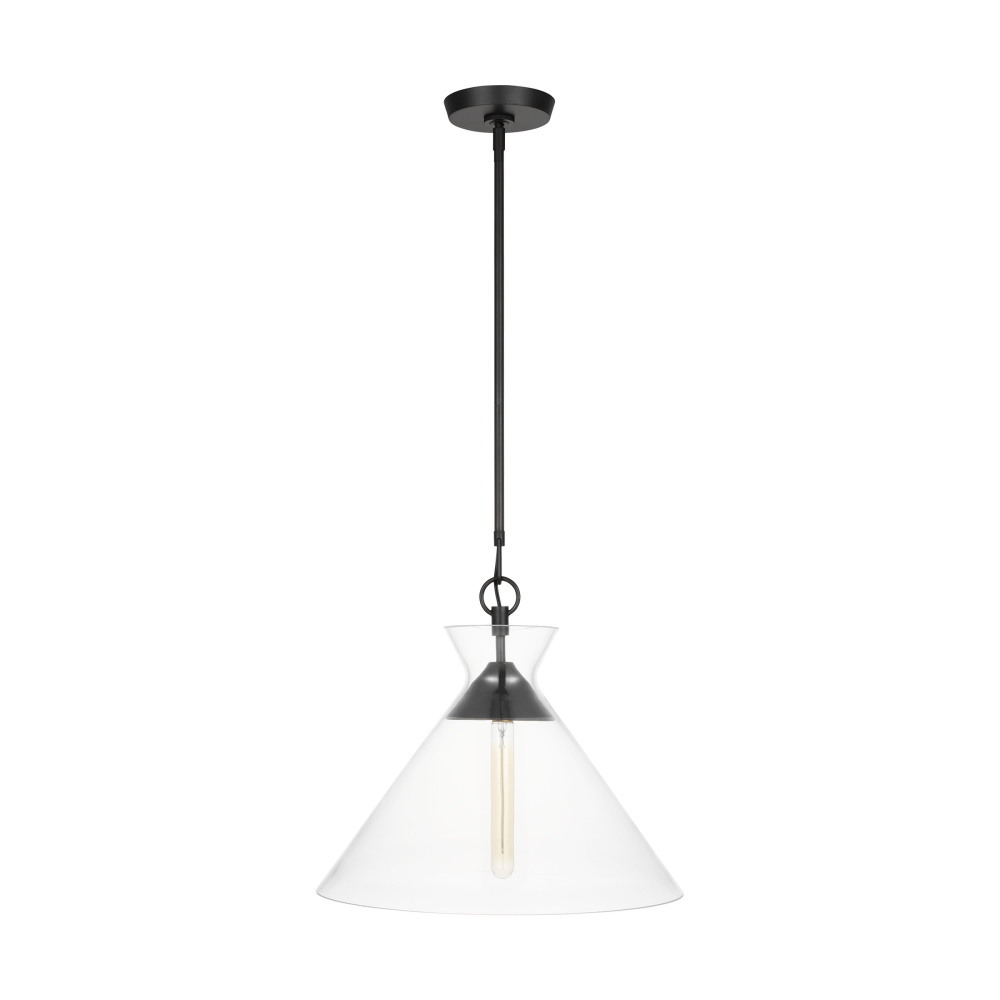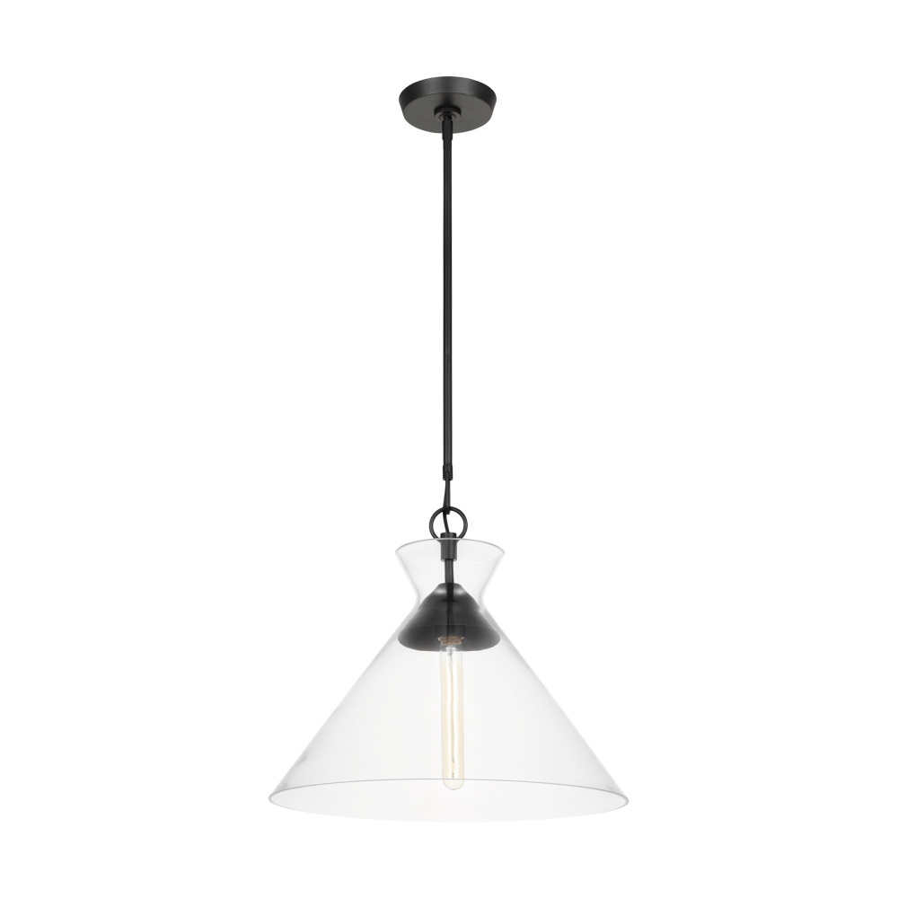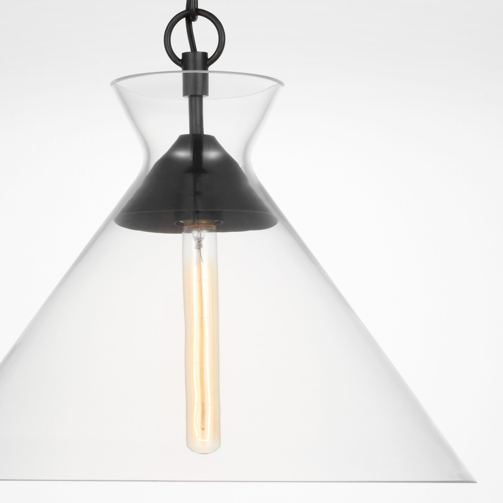 Designed by Chapman & Myers, the Atlantic series features globe and conical Clear Glass pendants paired with hardware in rich finishes; these work well singularly or in multiples to elevate any room. The lamping suspends from the center and appears floating within the Clear Glass shade.