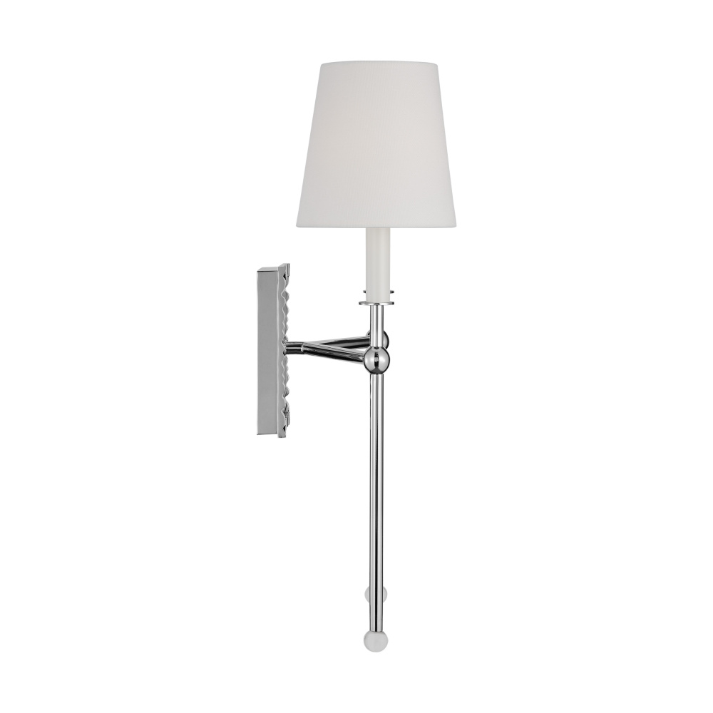 The Baxley wall sconce by Alexa Hampton exudes elegance, bringing modern elements to a traditional silhouette. With an exaggerated stem capped with a crystal ball, this sconce makes a bold, sleek statement and will align nicely in your hallway or as a bath vanity. The Alexa Hampton Collection brings a fresh take on traditional looks, beautiful and unique hand-applied finishes, and stunning, thoughtful, inspired pieces.