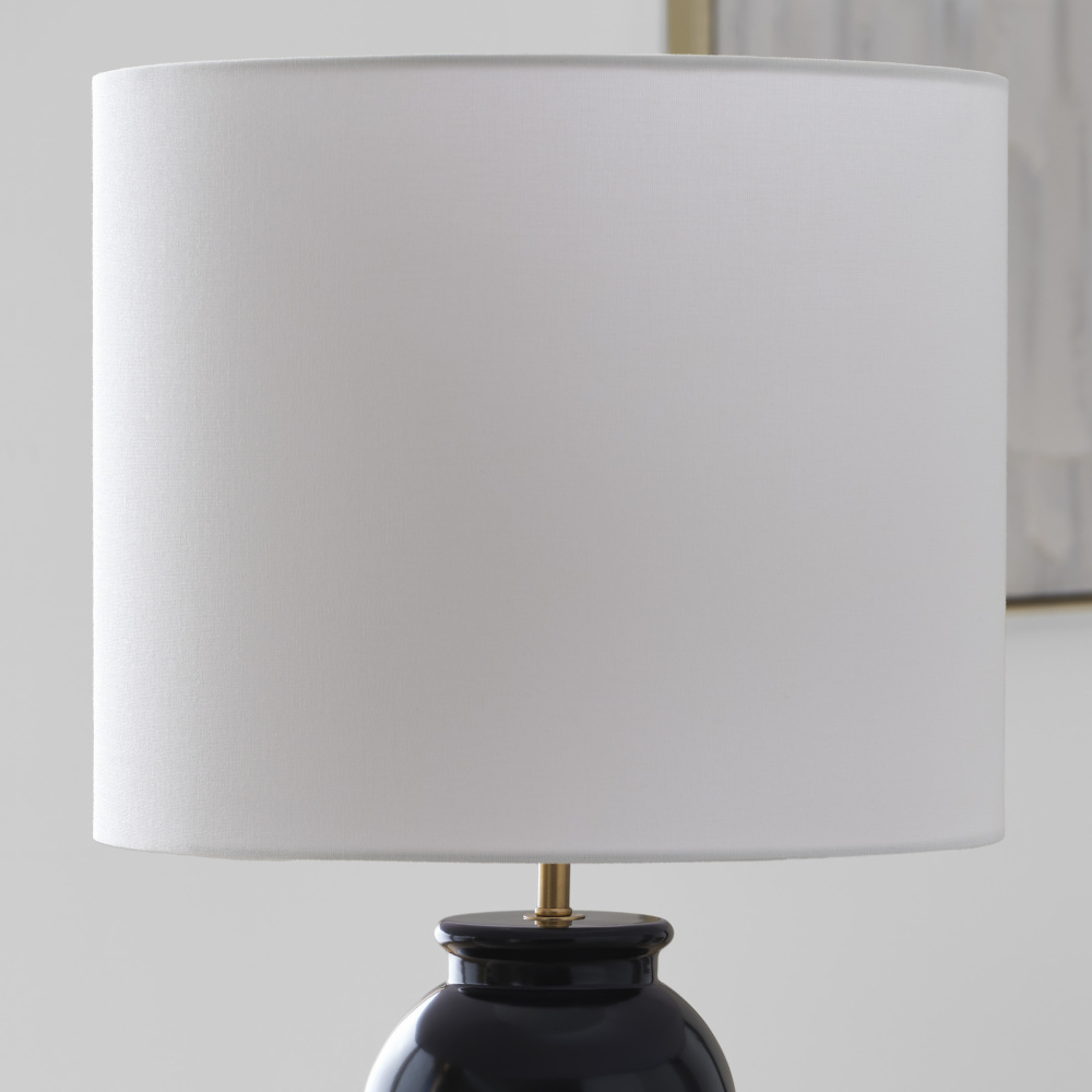 Designed by Drew & Jonathan Scott, Buckley is a classic gourd-style table lamp series in three saturated hues. Symmetrical lines give the traditional shape a modern look. Each is topped with a beautiful white linen shade; these table lamps are crafted of glass in three finishes that flow to the base.