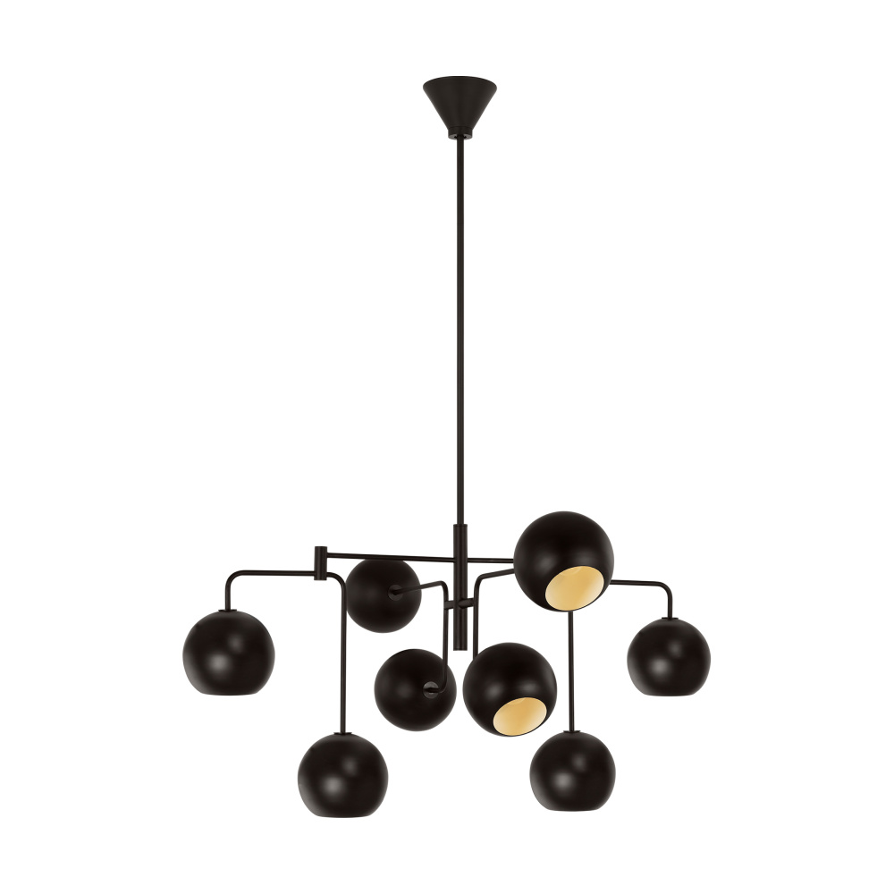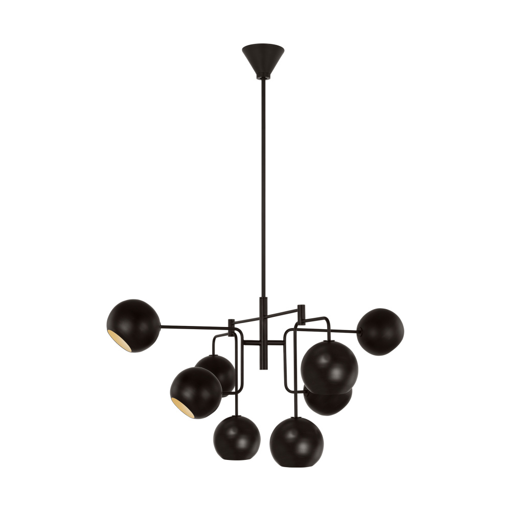 Designed by Christiane Lemieux, the Chaumont eight light multi tier chandelier in aged iron supplies ample lighting for your daily needs, while adding a layer of today's style to your home's décor. Inspired by the mobiles of Calder and classic French mid-century forms, the multi-directional shades suggest movement. This series includes 3 large chandeliers and a task sconce, all available in a dramatic Aged Iron living finish which will patina over time.