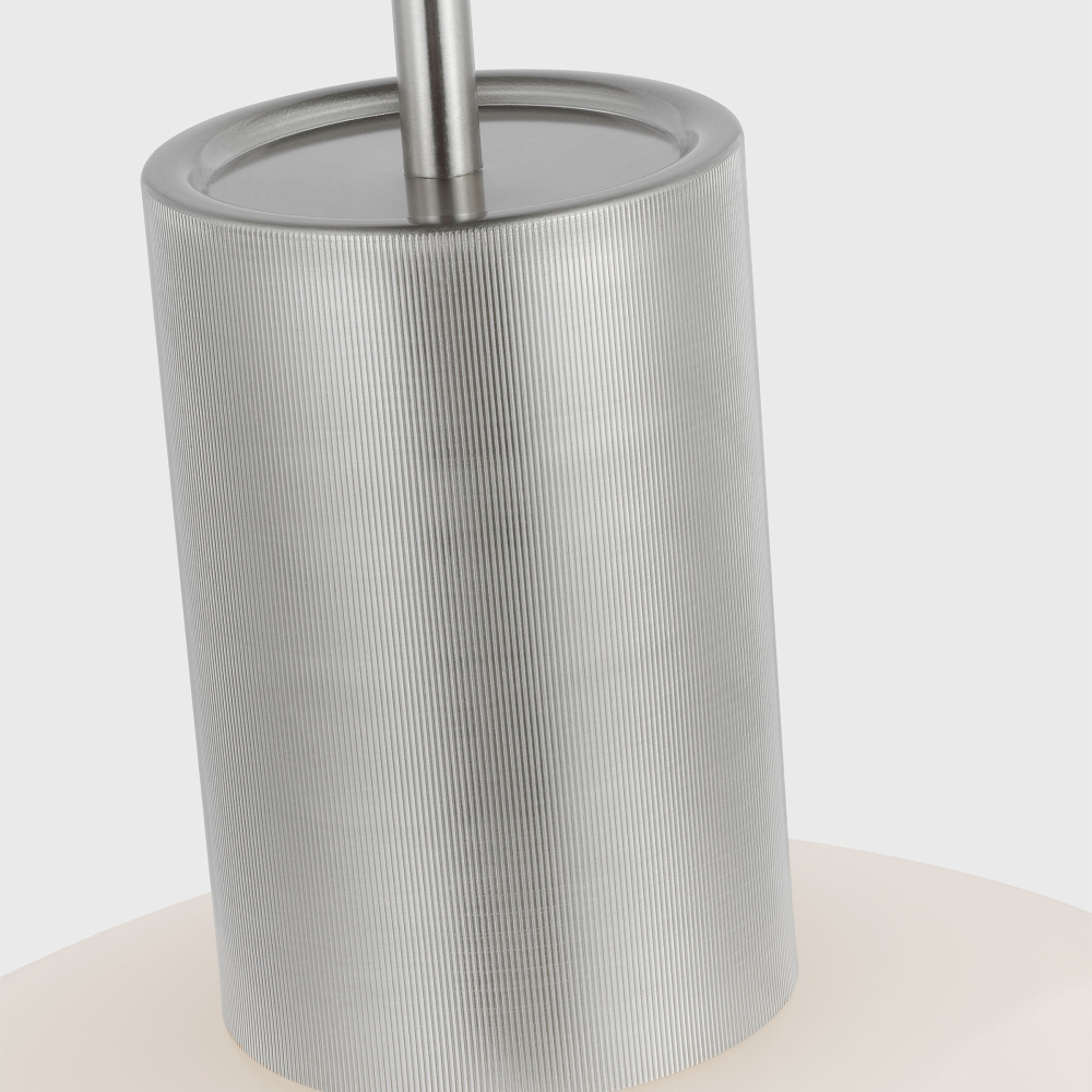 Crafted with Steel in a Brushed Nickel finish with milk glass shade