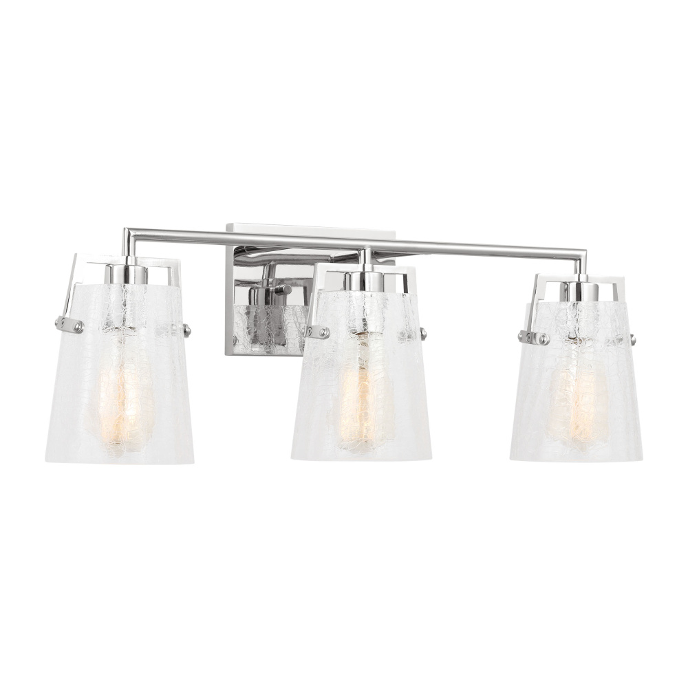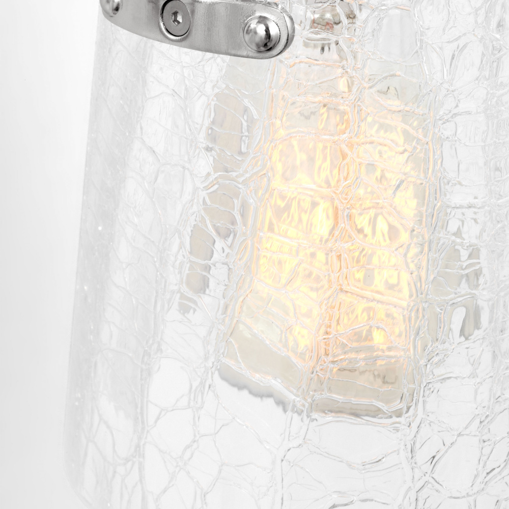 Crafted with Steel in a Chrome finish with clear crackle glass shades