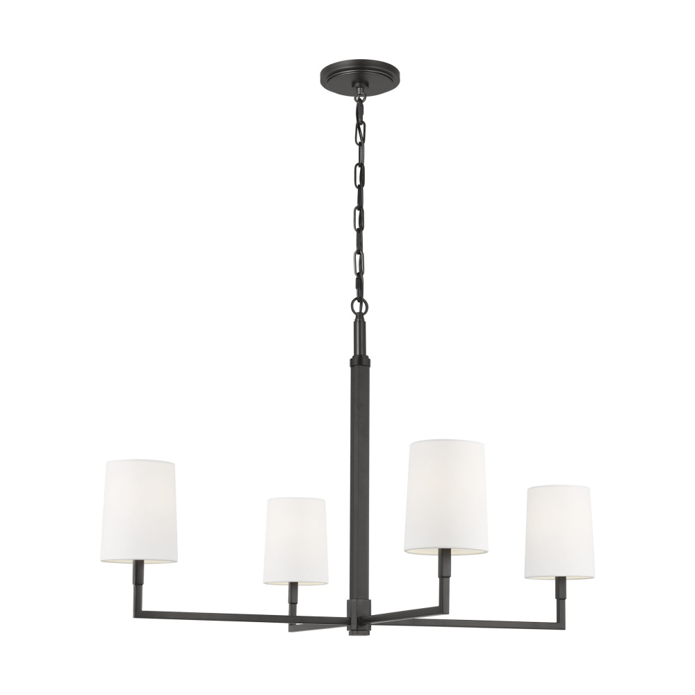 Crafted with Steel in a Aged Iron finish with white linen fabric shades