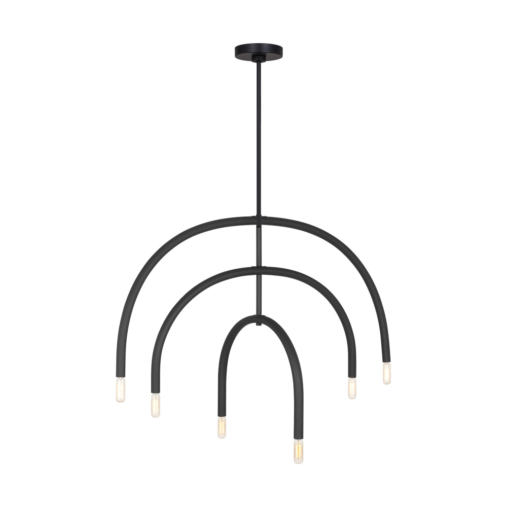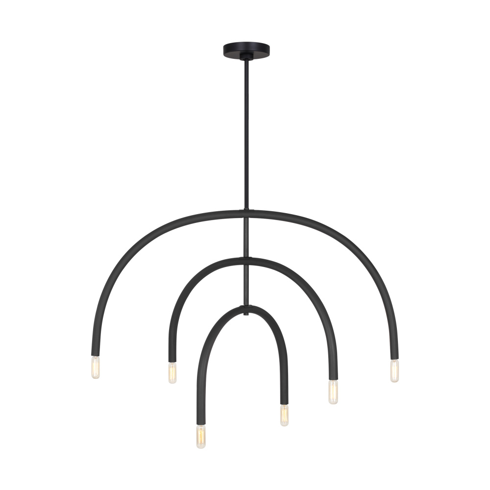Add a modern statement with this unique chandelier. Hadden's mobile-like form allows you to adjust the arcing arms for an arrangement of your design. Playfully proportioned center hub and two finish options give this series plenty of elegant contrast.