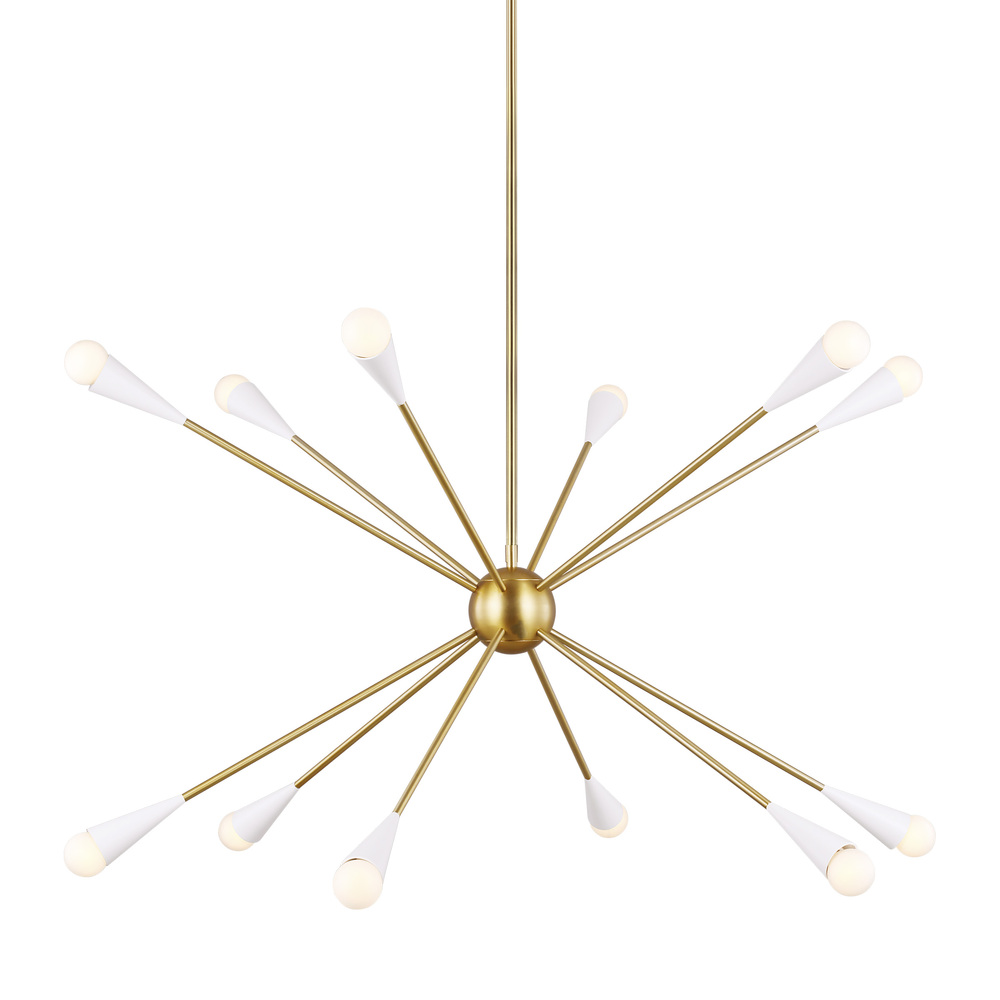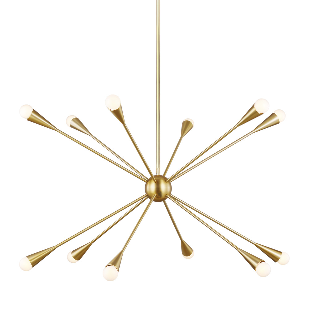 The Jax twelve light single tier chandelier in burnished brass provides abundant light to your home, while adding style and interest. Jax channels the celestial allure of a starburst silhouette, celebrating its iconic status within classic art deco design. Three finish options - including Burnished Brass, Polished Nickel and a stunning two-tone Midnight Black/Burnished Brass combination - make a refreshingly modern statement.