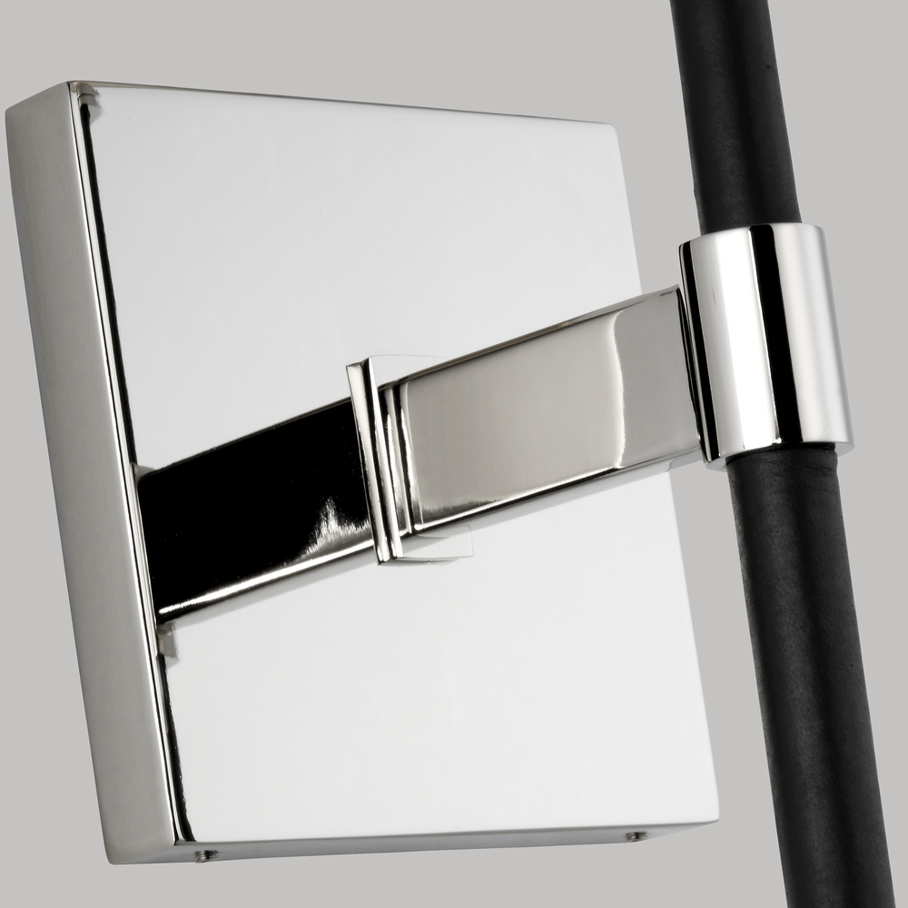 In the Katie one light wall sconce a leather stem (available in 2 lengths) contrasts with metal and white linen fabric shade to round out a timeless design. Available in: Time Worn Brass with Brown Leather or Polished Nickel with Black Leather. The combination of leather and steel gives this round chandelier equestrian flair.