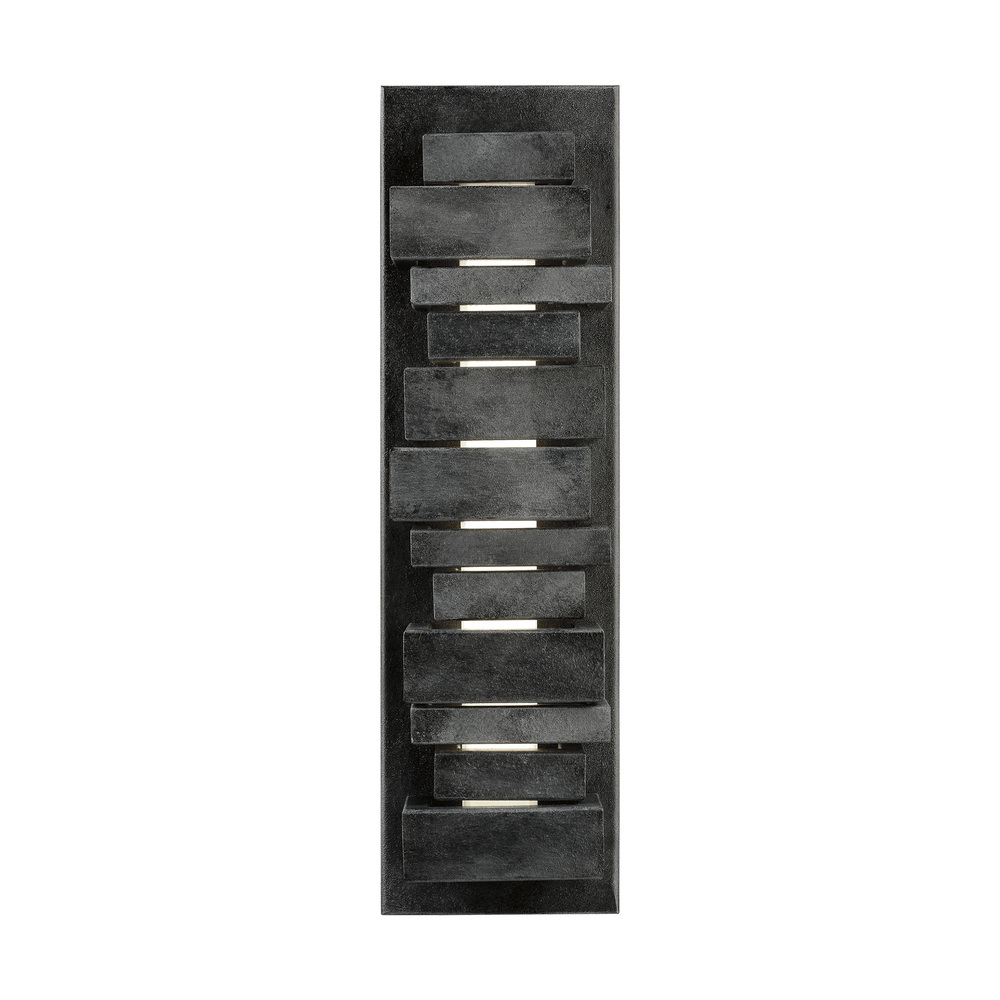 The Ledgend one light outdoor wall fixture in dark weathered zinc creates a warm and inviting welcome presentation for your home's exterior. The Ledgend outdoor light wall sconces by are modern and dramatic, making a significant design statement as visitors reach the front door. Energy efficient and long-lasting LEDs direct light forward through off-set openings inspired by stacked flagstone, as well as shining up and down. Made of Cast Aluminum, the fixture has exceptional durability to withstand the harshest elements. With a Dark Weathered Zinc finish, the assortment includes 5", 18" 26"and 34" LED outdoor wall sconces.