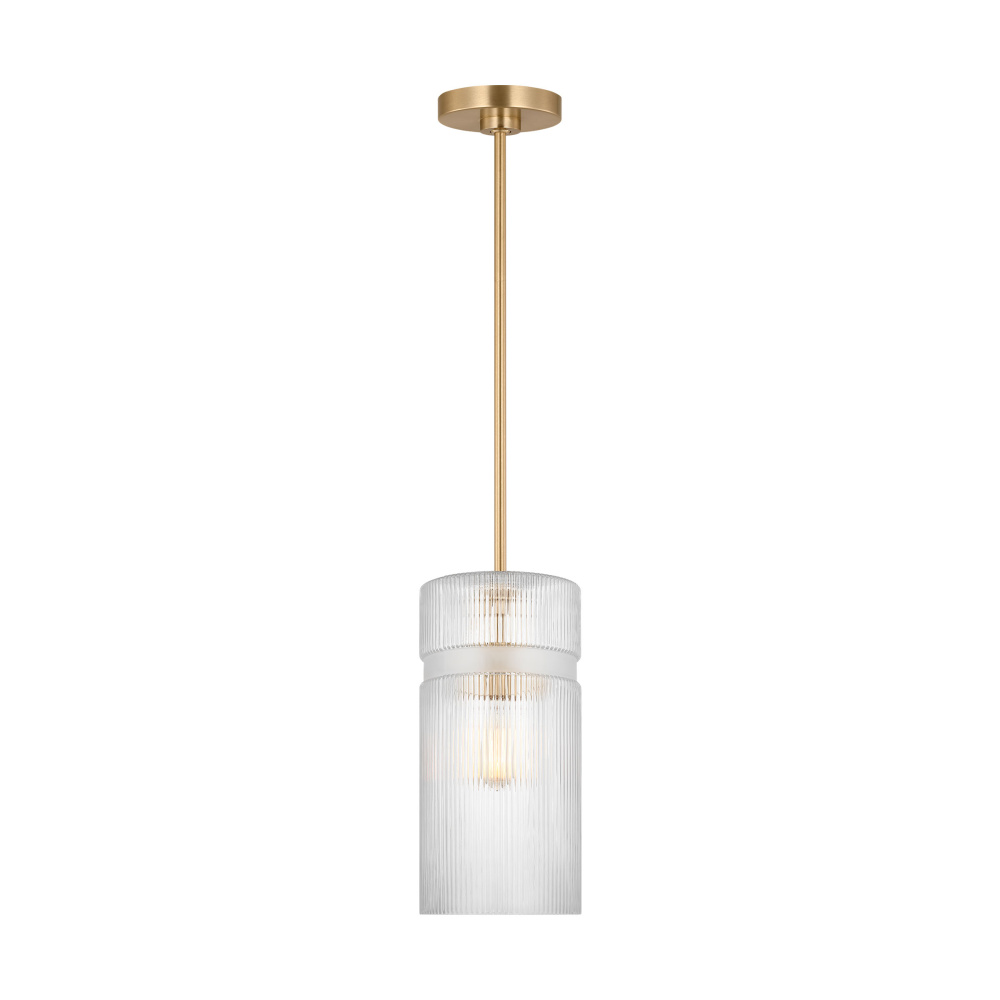Crafted with Steel in a Satin Brass finish with clear ribbed glass shade